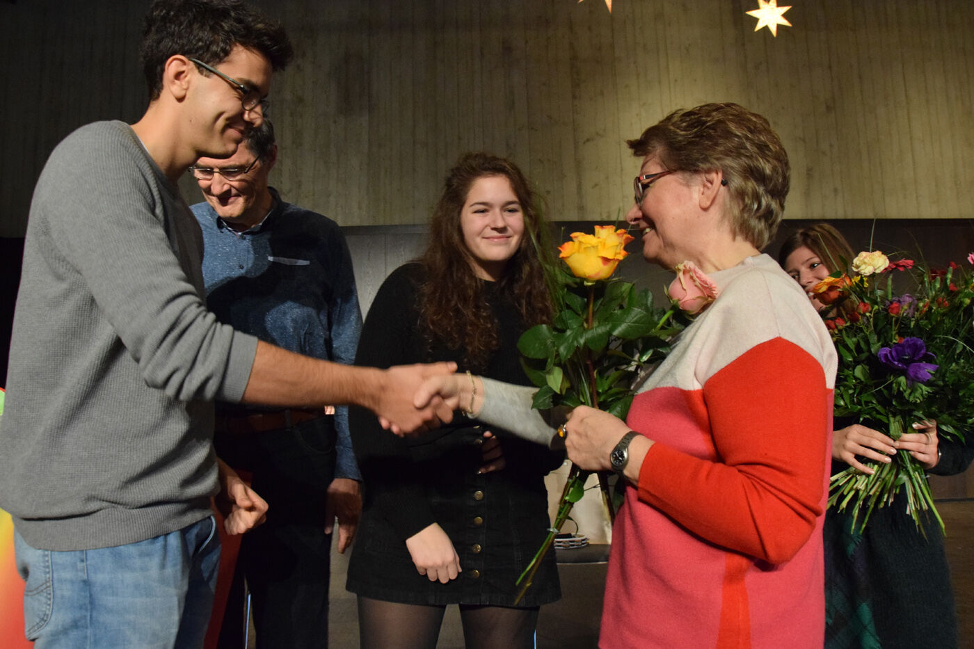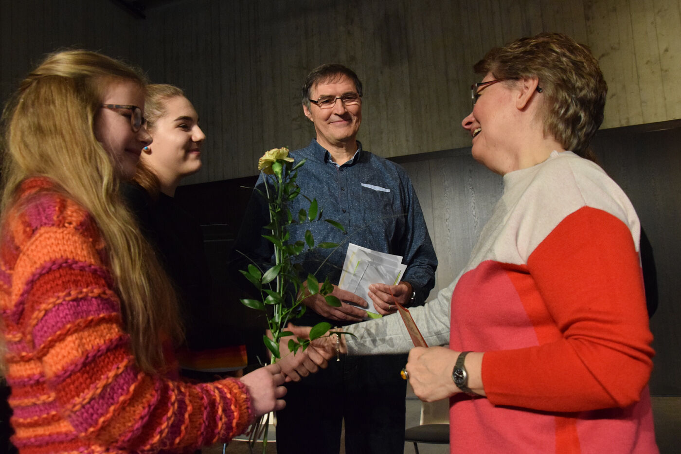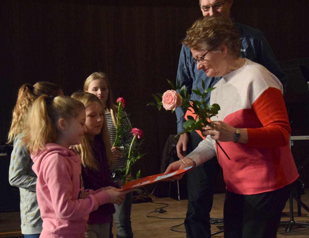 Passend zum Thema Engel, einem Schwerpunkt des Adventgottesdienstes, bezeichnete Schulleiterin Andrea Bliese die langjährige Schulsekretärin Anneliese Gross als „Engel“. Das seien Menschen, die einem jeden Tag beiseite stünden, erklärte die Schulleiterin. „26 Jahre lang haben Sie viele Schülerinnen und Schüler begleitet, haben Sie viele Pflaster im Sekretariat verteilt oder auch Hustenbonbons. Sie haben auch viele stressige und schwierige Zeiten erlebt. Aber genau solche Engel wie Sie braucht jedes Sekretariat, sonst ist man verloren.“