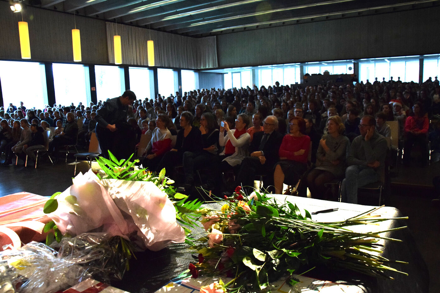 Für Anneliese Gross war der letzte Tag vor den vor den Weihnachtsferien auch ihr letzter Arbeitstag als Sekretärin am Camerloher-Gymnasium. Die gesamte Schulfamilie verabschiedete sich von Camerloher-Urgestein Anneliese Gross nach dem gemeinsamen Adventgottesdienst in der Aula.