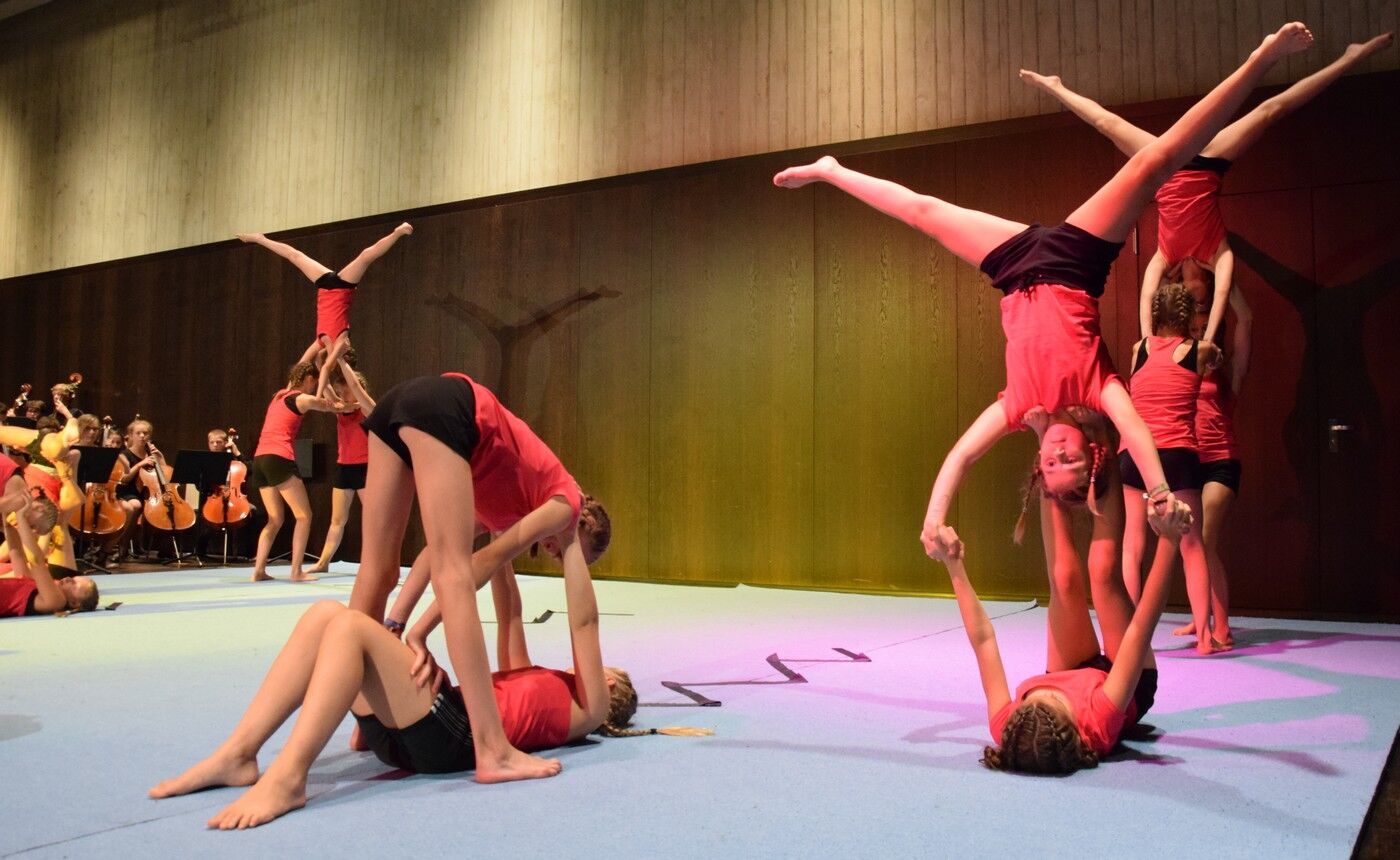 Und dann gibt’s bei den Sommerkonzerten des Camerloher-Gymnasiums nicht nur einen Genuss für die Ohren, sondern auch für die Augen. Der AK Akrobatik (Leitung Daniela Spies) hatte beispielsweise zu Henry Mancinis „The Pink Panther Theme“, musikalisch in Szene gesetzt vom Jugendsinfonieorchester, oder zum Medley aus dem Film „Das Dschungelbuch“ eigens eine entsprechende Akrobatik-Choreographie ausgedacht. Und so verging der zweieinhalbstündige Konzertabend wie im Flug. Zu recht langanhaltender Applaus des begeisterten Publikum, das sich bereits auf nächsten Sommer freut, wenn in der Camerloher-Aula dann das Motto wieder heißt: „The Last Night oft he Proms“.