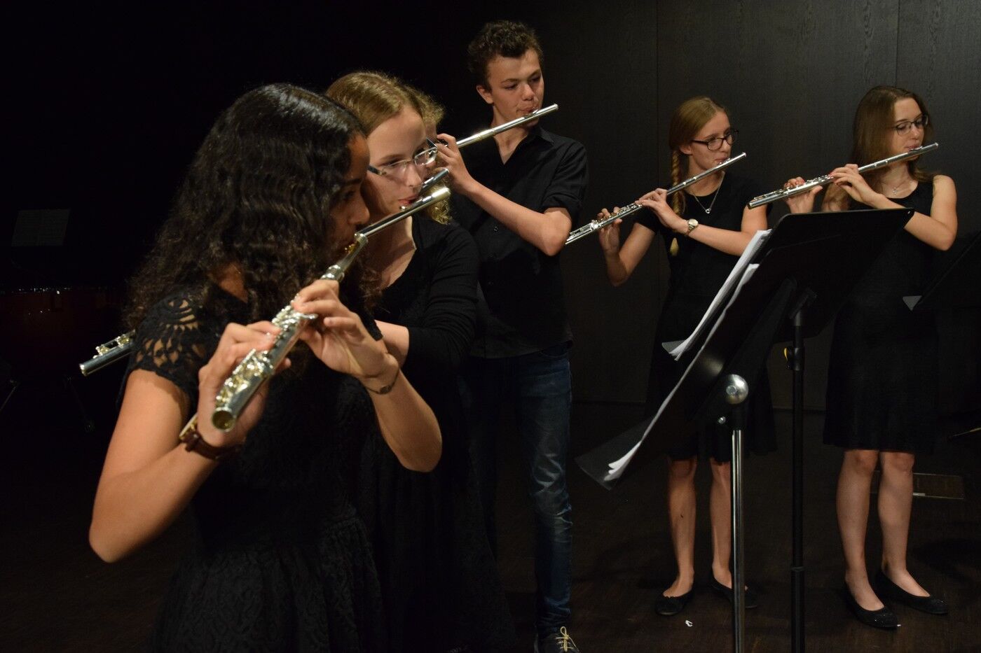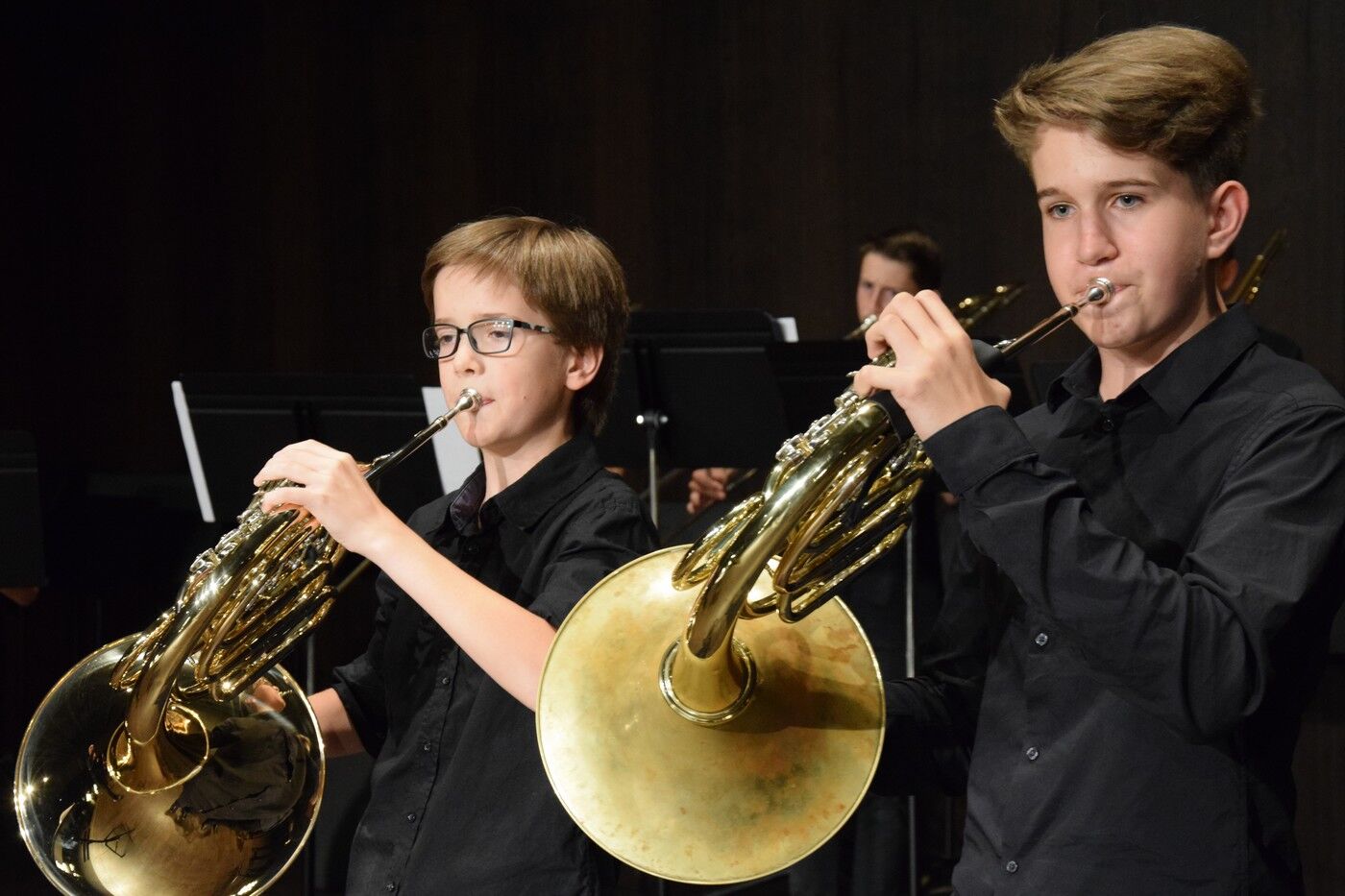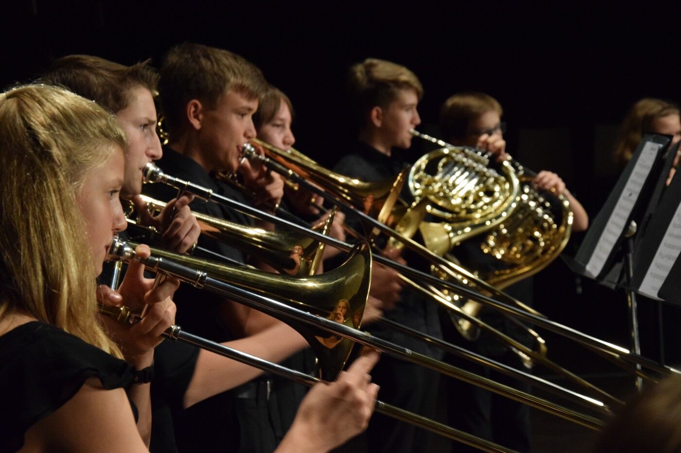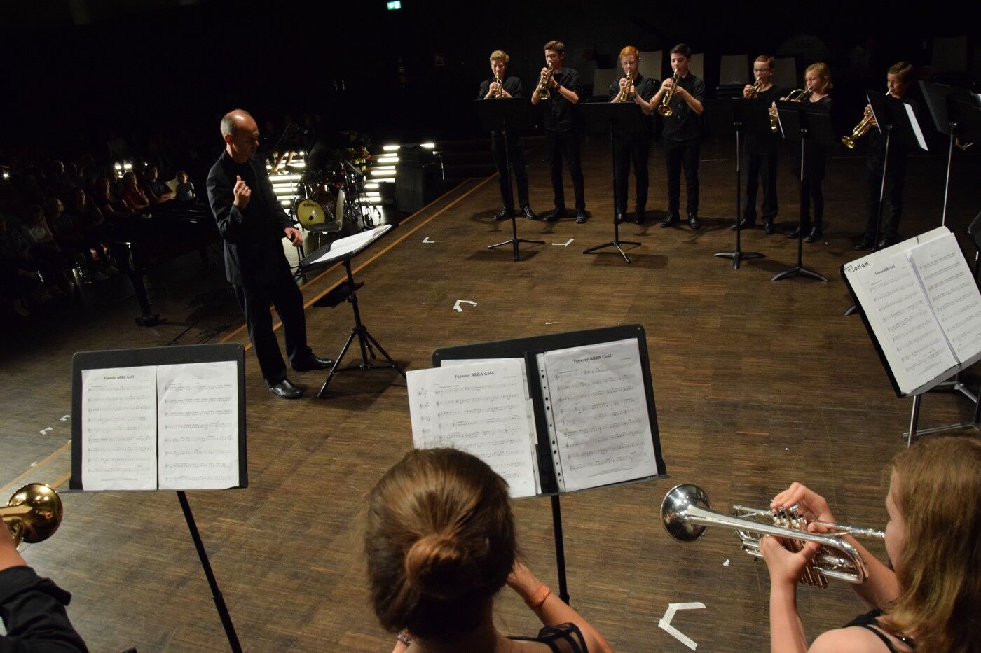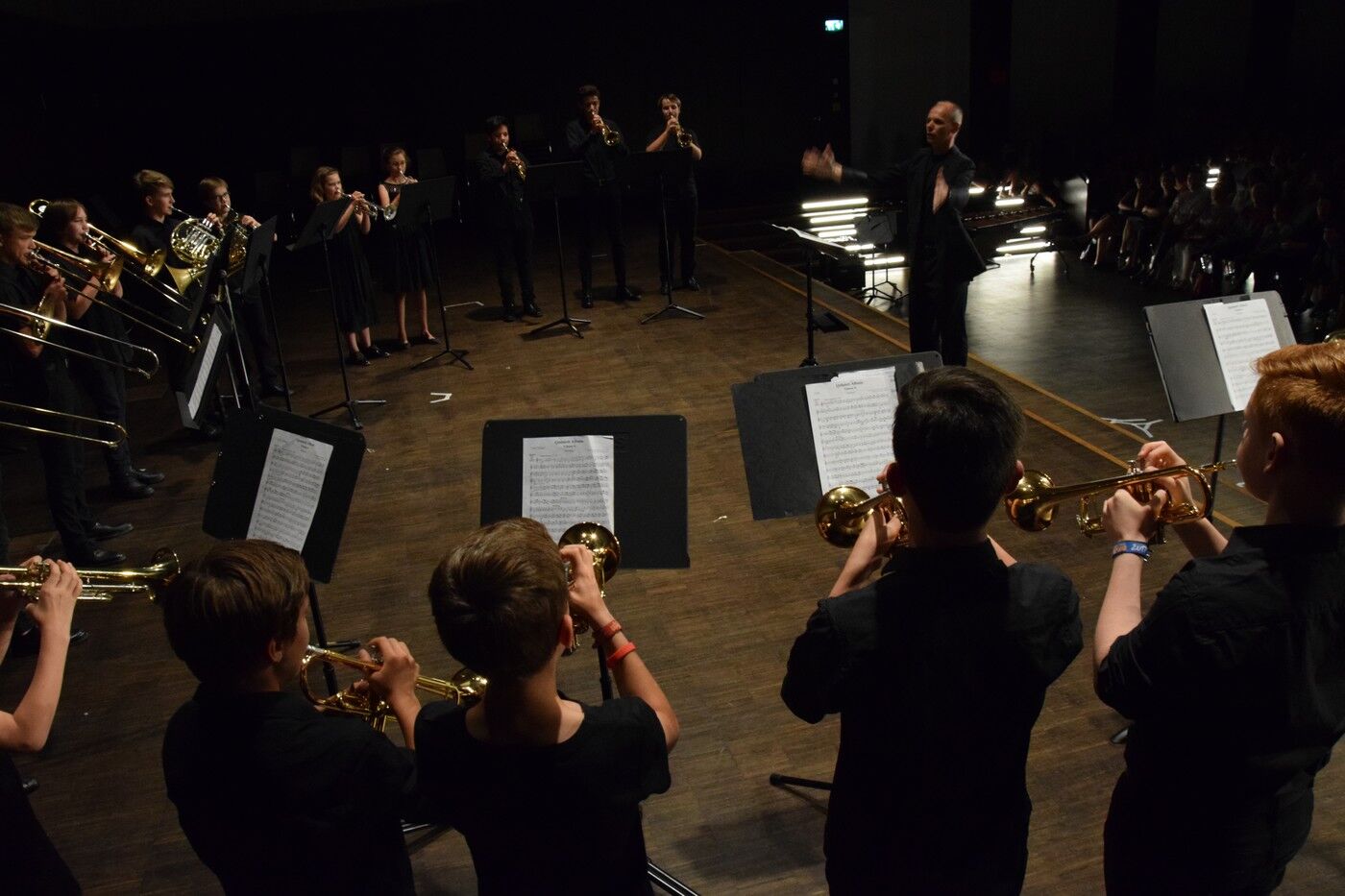 Schwungvoll ging’s dann weiter mit dem Jugendchor der 5. und 6. Jahrgangsstufe (Leitung Ursula Bongard, Klavier Johannes Wiedehofer), der einige Lieder aus dem Film „Die Kinder des Monsieur Matthieu“ einstudiert hatten. Der Jugendchor der 7. und 8. Klassen (Leitung Friederike Eglhuber, Klavier Luisa Bormann) begeistere u.a. mit Mendelssohn-Bartholdys Hexenlied. Mit dem „Brandenburgischen Konzert Nr. 3“ hatte das Jugendblechbläserensemble unter der Leitung von Lucinde Haeselbarth ein sehr bekanntes Stück ausgesucht ebenso wie das Jugendblechbläserensemble (Leitung Gunther Fendler) mit Händels „Halleluja“ (aus dem „Messias“).