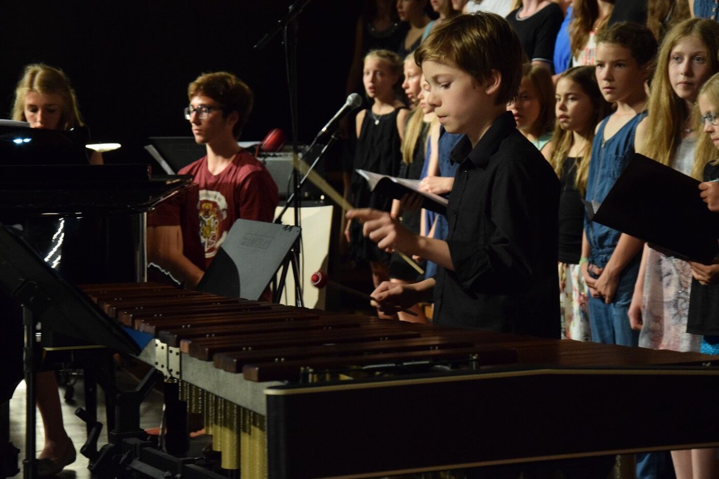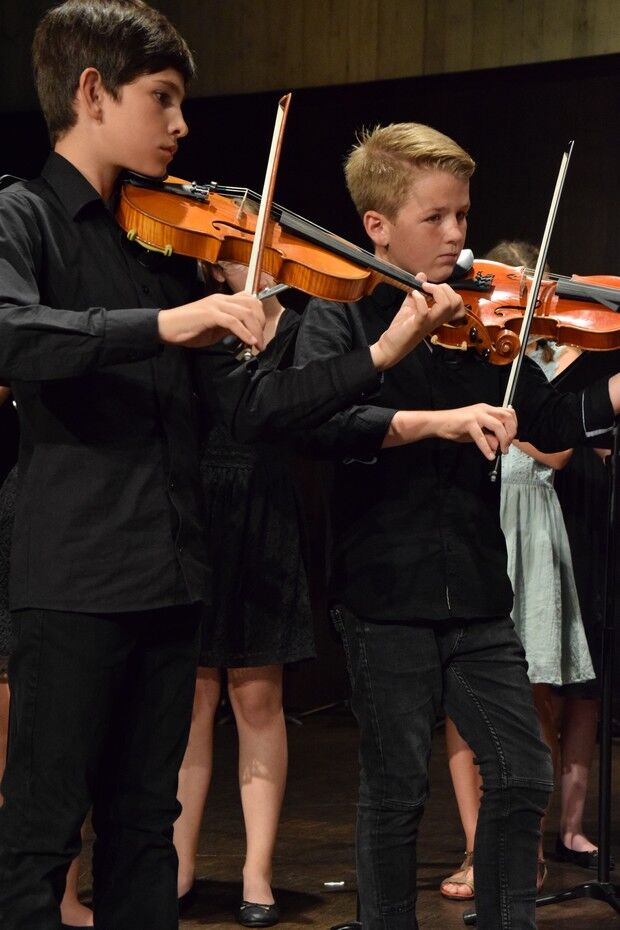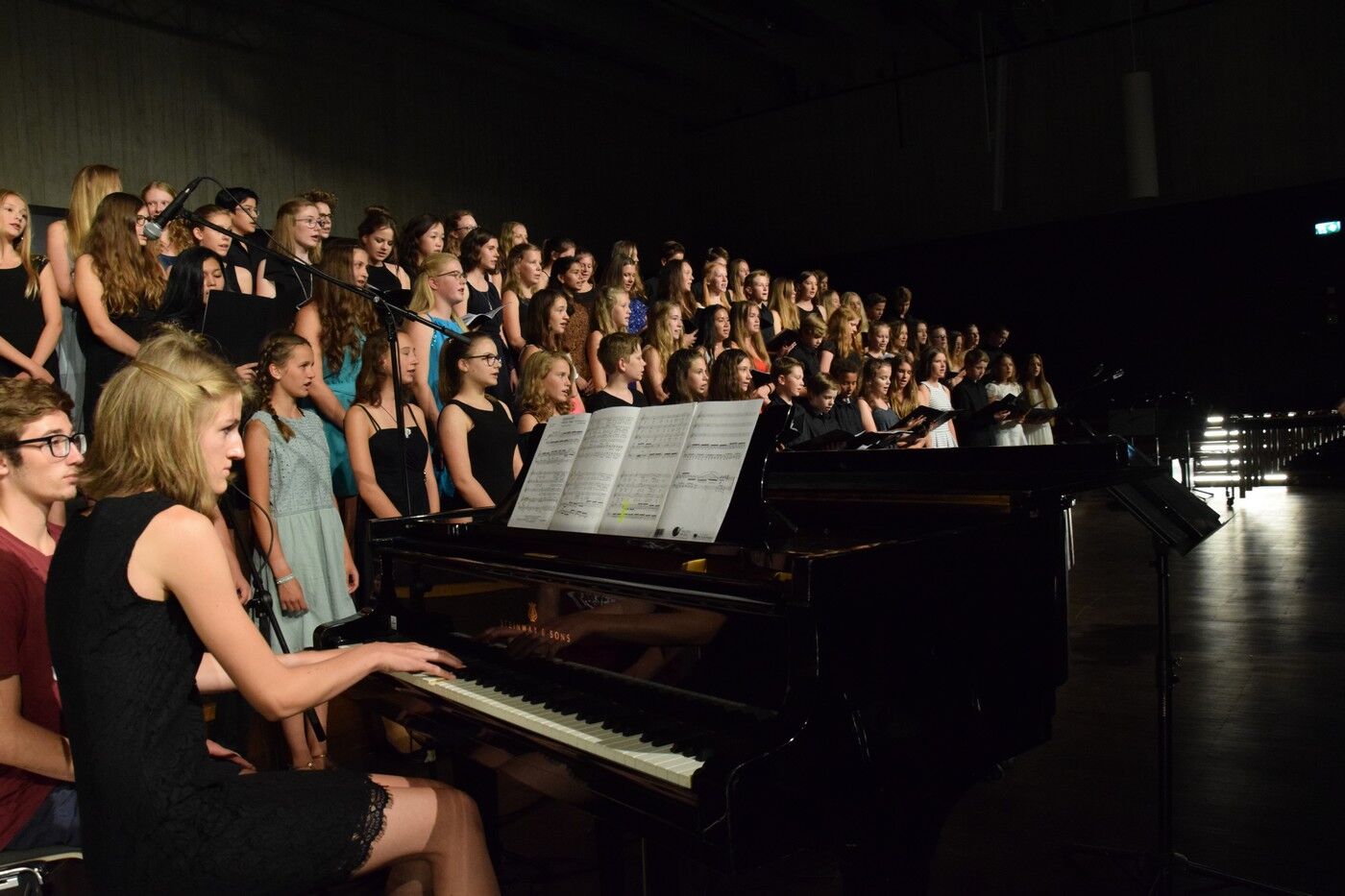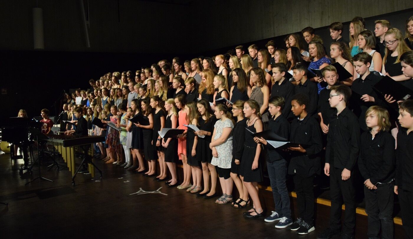 Für die vielen Fünft- und Sechstklässler war dieses Sommerkonzert der erste große Auftritt vor über 600 Zuhörern. Sie meistern ihr großes Lampenfieber perfekt. Das bewies der Nachwuchs im NewCamer-Orchester unter der Leitung von Sebastian Brand bestens. Perfekt interpretierten sie beispielsweise „Smoke on the water“,, denn Rockklassiker von Deep Purple. Der zweite Teil des Konzerts widmete sich dann ganz der Musik des 20. Jahrhunderts. Freddy Mercurys „“Bohemian Rhapsody“, gefühlvoll und perfekt interpretiert vom Jugendchor der 7. und 8. Klassen (Leitung: Friederike Eglhuber), durfte ebenso wenig fehlen wie das ABBA-Medly „Forever ABBA Gold“, bestens umgesetzt vom Jugendblechbläserensemble.