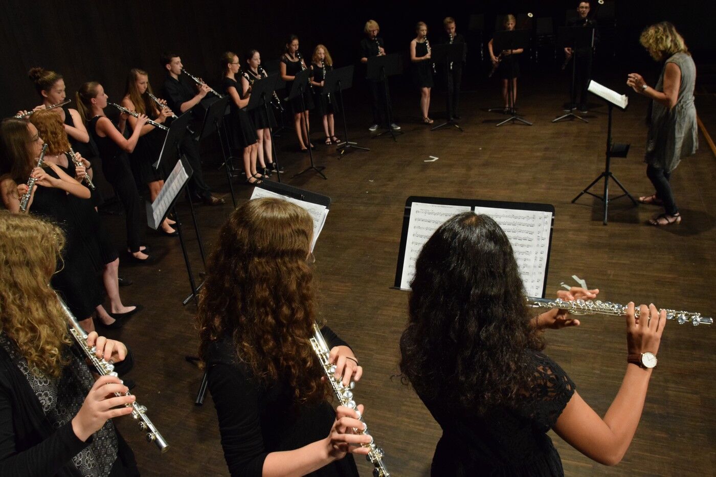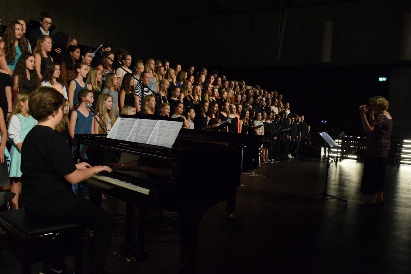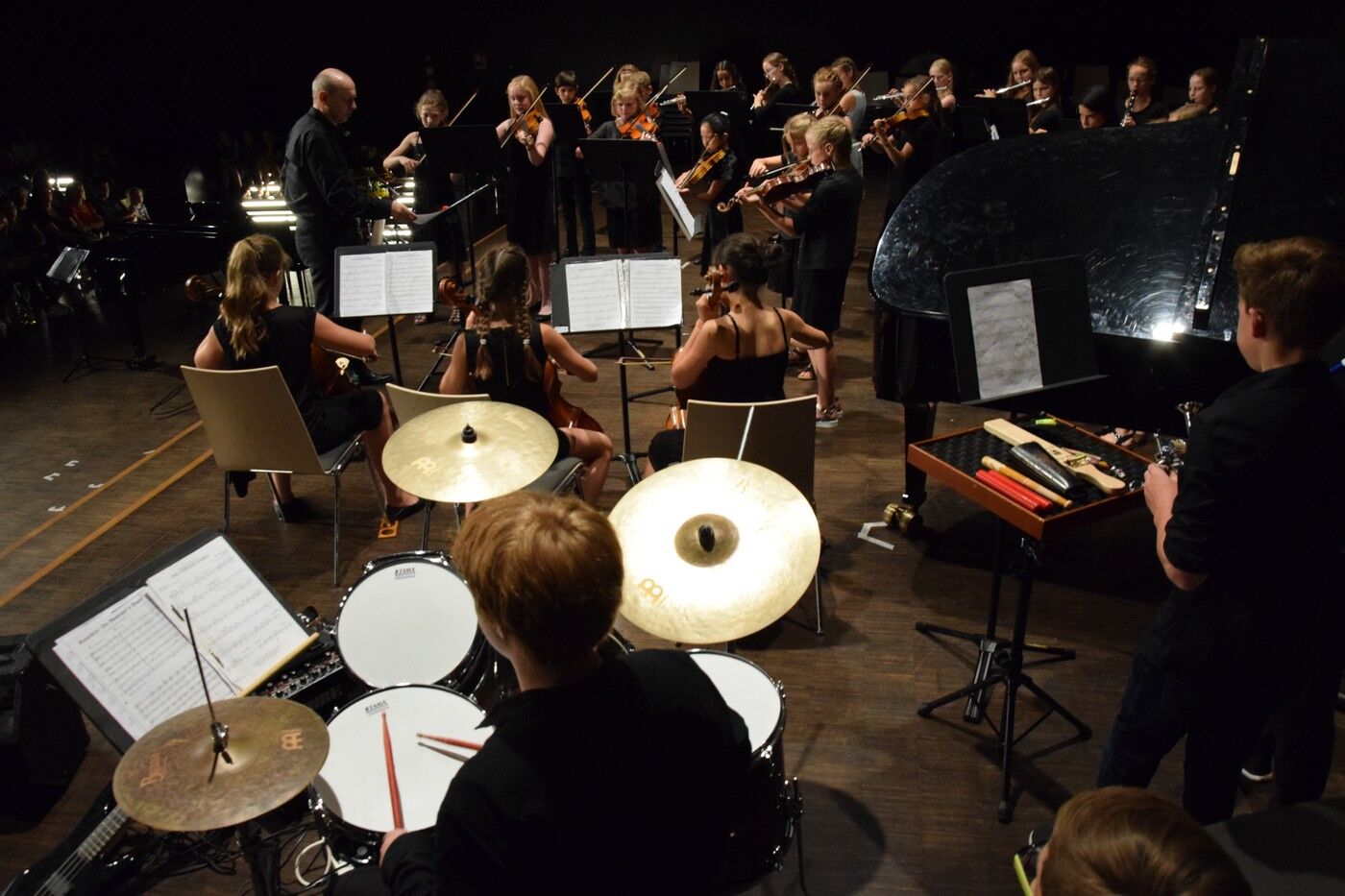 Für die vielen Fünft- und Sechstklässler war dieses Sommerkonzert der erste große Auftritt vor über 600 Zuhörern. Sie meistern ihr großes Lampenfieber perfekt. Das bewies der Nachwuchs im NewCamer-Orchester unter der Leitung von Sebastian Brand bestens. Perfekt interpretierten sie beispielsweise „Smoke on the water“,, denn Rockklassiker von Deep Purple. Der zweite Teil des Konzerts widmete sich dann ganz der Musik des 20. Jahrhunderts. Freddy Mercurys „“Bohemian Rhapsody“, gefühlvoll und perfekt interpretiert vom Jugendchor der 7. und 8. Klassen (Leitung: Friederike Eglhuber), durfte ebenso wenig fehlen wie das ABBA-Medly „Forever ABBA Gold“, bestens umgesetzt vom Jugendblechbläserensemble.