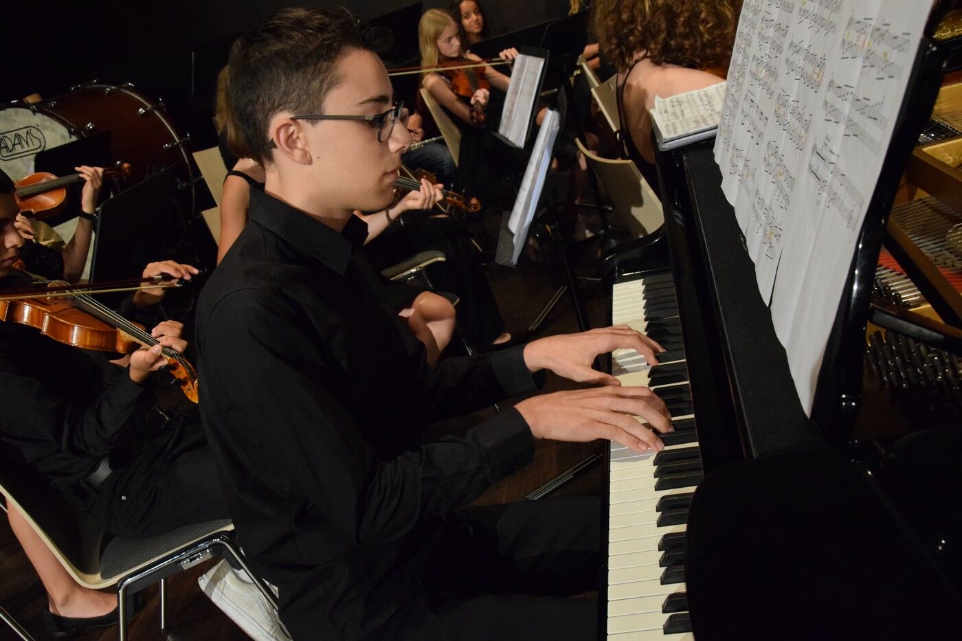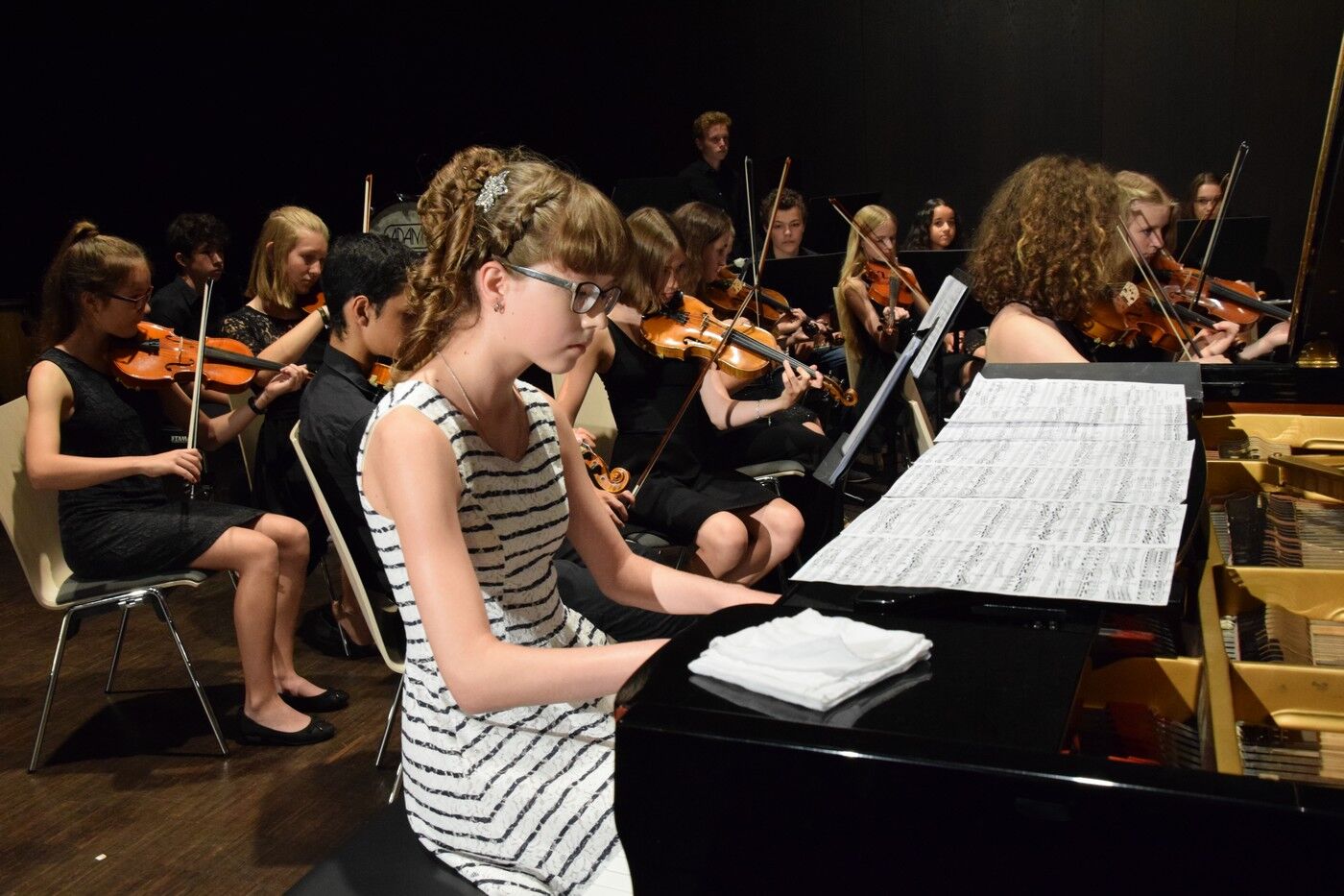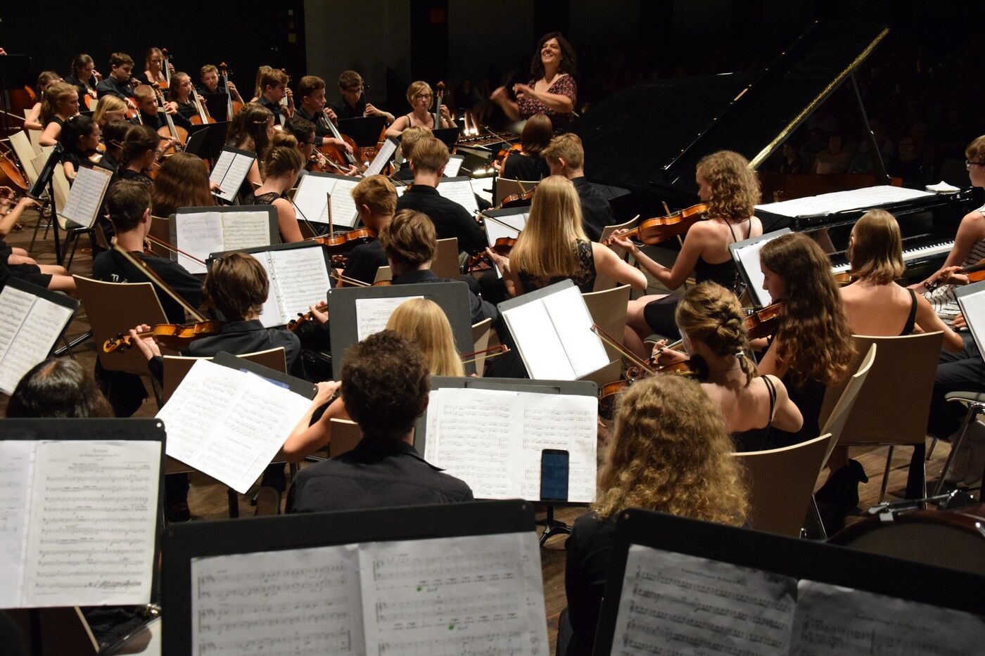 Mit Scott Joplins bekannten „Entertainer – eine Humoresque zu Beginn eines Konzerts“ stimmte der Jugendchor unter der Leitung von Ursula Bongard die Zuhörer auf die musikalische Reise ein. Vor der Pause standen dann die Klassiker im Mittelpunkt. Die „Kleinen“ des Camerloher-Gymnasiums hatten sich sehr anspruchsvolle Stücke ausgewählt, wie beispielsweise Jules Massenenes „Meditation aus der Oper ‚Thais‘“ (Solisten: Katharina Eglhuber an der Violine und Jakob Kuen am Klavier) oder Felix Mendelssohn-Bartholdys bekanntes „Konzert für Klavier und Orchester Nr. 1“ (Solistin Larissa Höcherl am Klavier). Das Jugendsinfonieorchester unter der Leitung von Marianne Brand setzte hier schon zwei echte Höhepunkte.