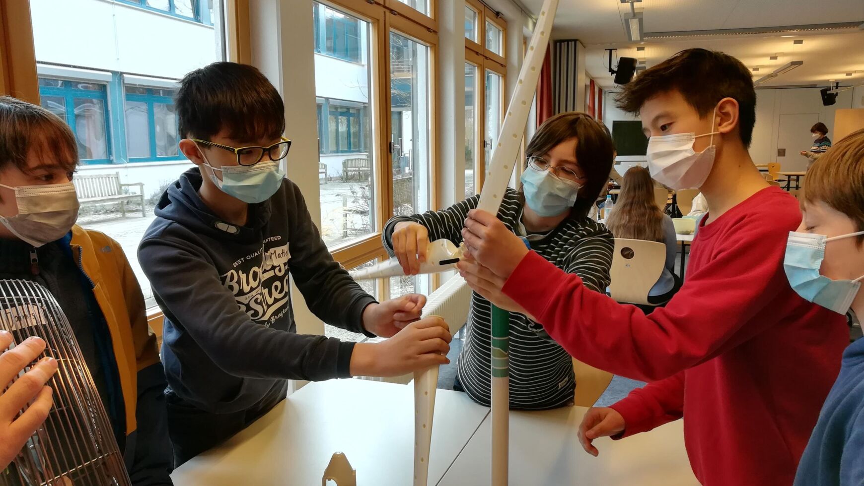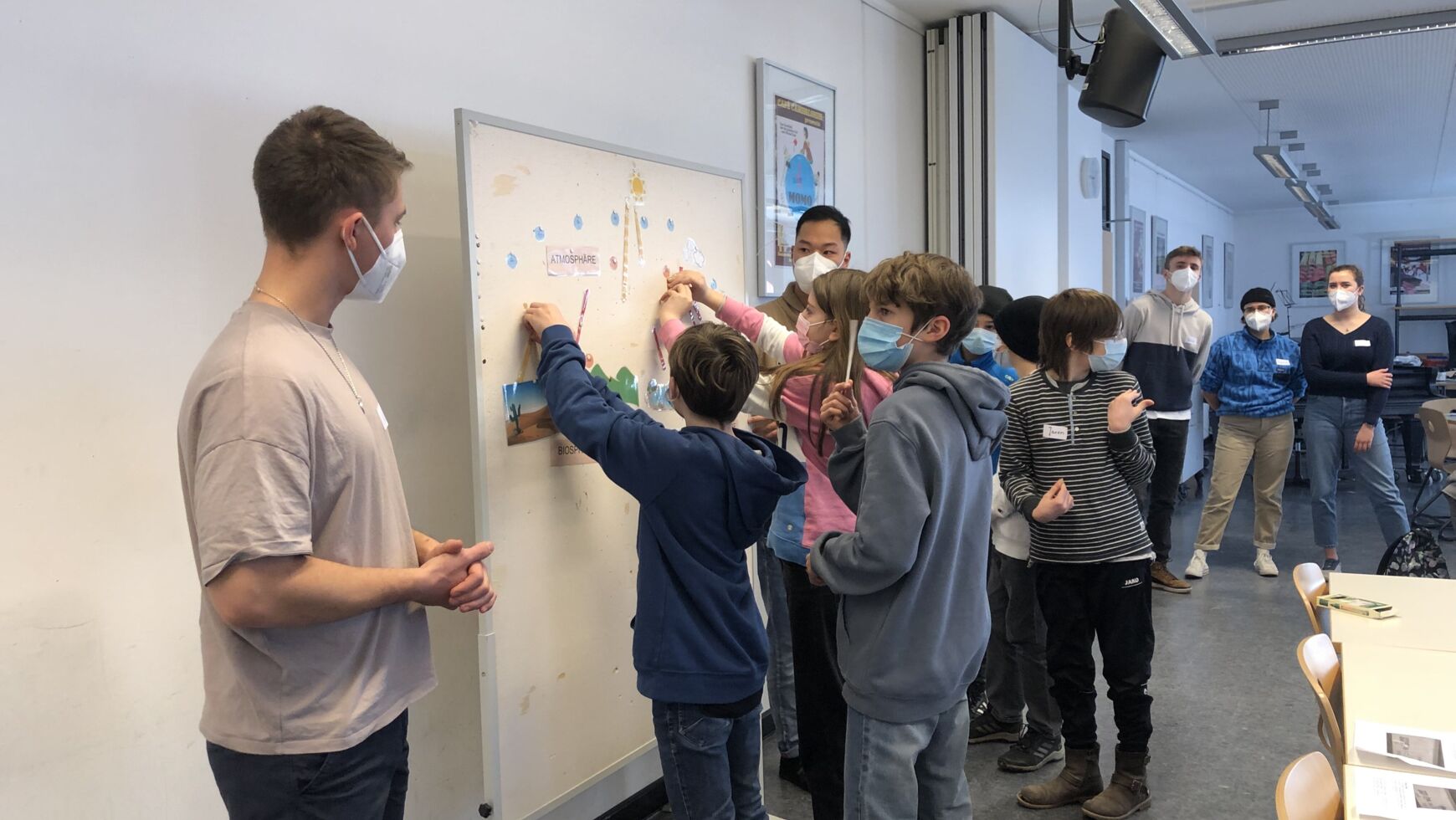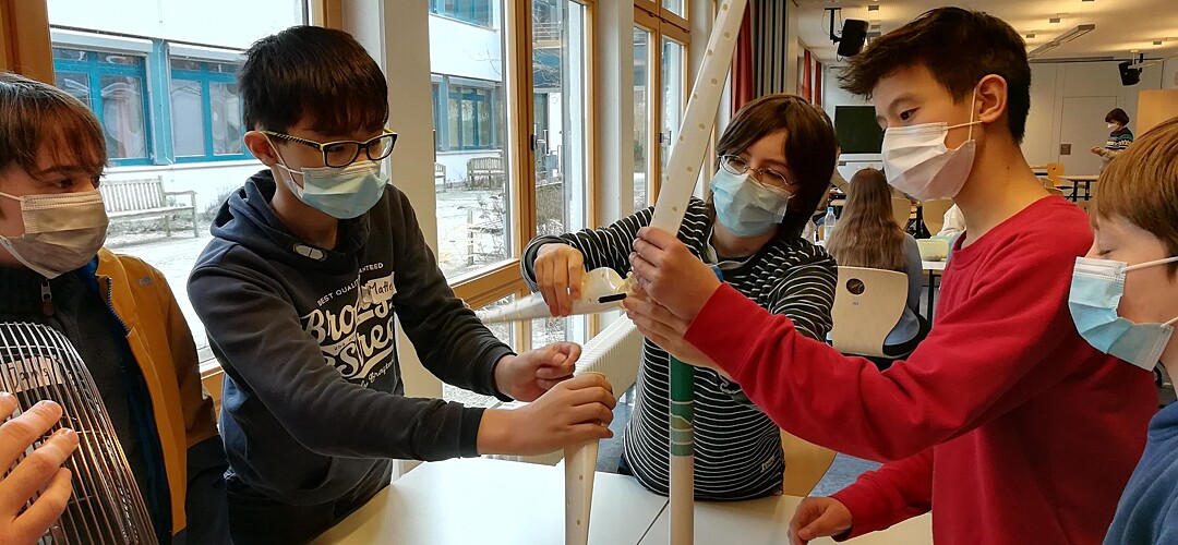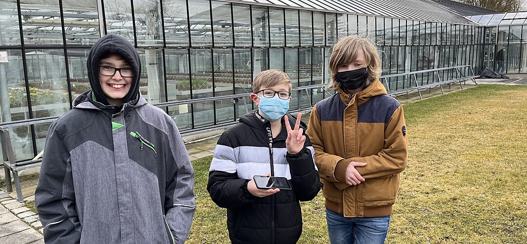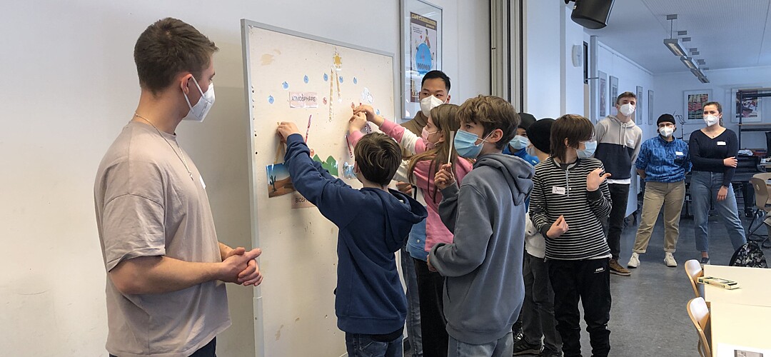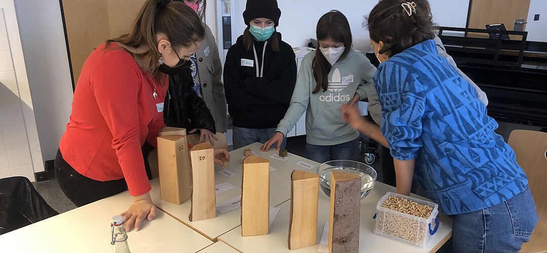 Nicht weniger praxisorientiert war der Klimatag gestaltet. Die Auswirkungen des Klimawandels werden durch Starkwetterereignisse und den Anstieg der Meeresspiegel für jedermann sichtbar. Verantwortlich dafür sind menschliche Verhaltensweisen, insbesondere übermäßiger Ressourcenverbrauch und Massenkonsum. Eine drohende Klimakrise ist in aller Munde und eng mit der Nachhaltigkeitsdiskussion verknüpft. Aber wie hängen Klimaschutz und Nachhaltigkeit zusammen? Welche Verhaltensweisen müssen wir verinnerlichen, damit eine nachhaltige Zukunft gelingen kann? Im Rahmen des von den Fachschaften Biologie und Geographie gestalteten Moduls gingen die Schülerinnen und Schüler zusammen mit Studenten der Hochschule Weihenstephan-Triesdorf diesen Fragen nach. Als erster Programmbaustein stand der Workshop „Nachhaltigkeit und Klimaschutz“ auf dem Plan. Nach einem interaktiven Einführungsvortrag zum anthropogenen, menschgemachten Treibhauseffekt durften die Schülerinnen und Schüler selbst Hand anlegen. Unter Leitung von Niklas Hofbaur konnten die Jugendlichen an fünf Stationen, die jeweils von einem Studenten der HSWT betreut wurden, verschiedene Erneuerbare Energien kennen lernen und ihr eigenes Verbraucherverhalten reflektieren. Im Rahmen von kleinen Versuchen haben die Siebtklässlerinnen und Siebtklässler den Stromverbrauch von Haushaltsgeräten gemessen, ihren individuellen CO2-Fußabdruck analysiert, den idealen Standort für Windkraftanlagen gefunden, den Nutzwert von verschiedenen Holzarten bestimmt und die Funktionsweise einer Photovoltaik-Anlage in Erfahrung gebracht. Im zweiten Baustein lernten sie den Freisinger Energielehrpfad kennen. Der appbasierte Spaziergang sensibilisierte die Jugendlichen für einen verantwortungsvollen Umgang mit Energie und ihre Möglichkeiten, einen Beitrag zum Klimaschutz zu leisten. Spielerisch wurden durch einen interaktiven Audioguide wichtige Handlungskompetenzen für die Zukunft ausgebildet. An den einzelnen Stationen wurden mit Rätseln, Quizfragen und spannenden Informationen weitere Möglichkeiten der „Nachhaltige Energieerzeugung“ erlebbar gemacht. Stationen waren unter anderem eine Elektrozapfsäule, die Treibhausgärten, das Heizkraftwerk und die Agri-Photovoltaikanlage auf dem Universitätsgelände. Sowohl aus dem Workshop als auch aus dem Energielehrpfad gewannen die Schülerinnen und Schüler theoretische und praktische Erkenntnisse, die sie im Alltag gewinnbringend anwenden können.