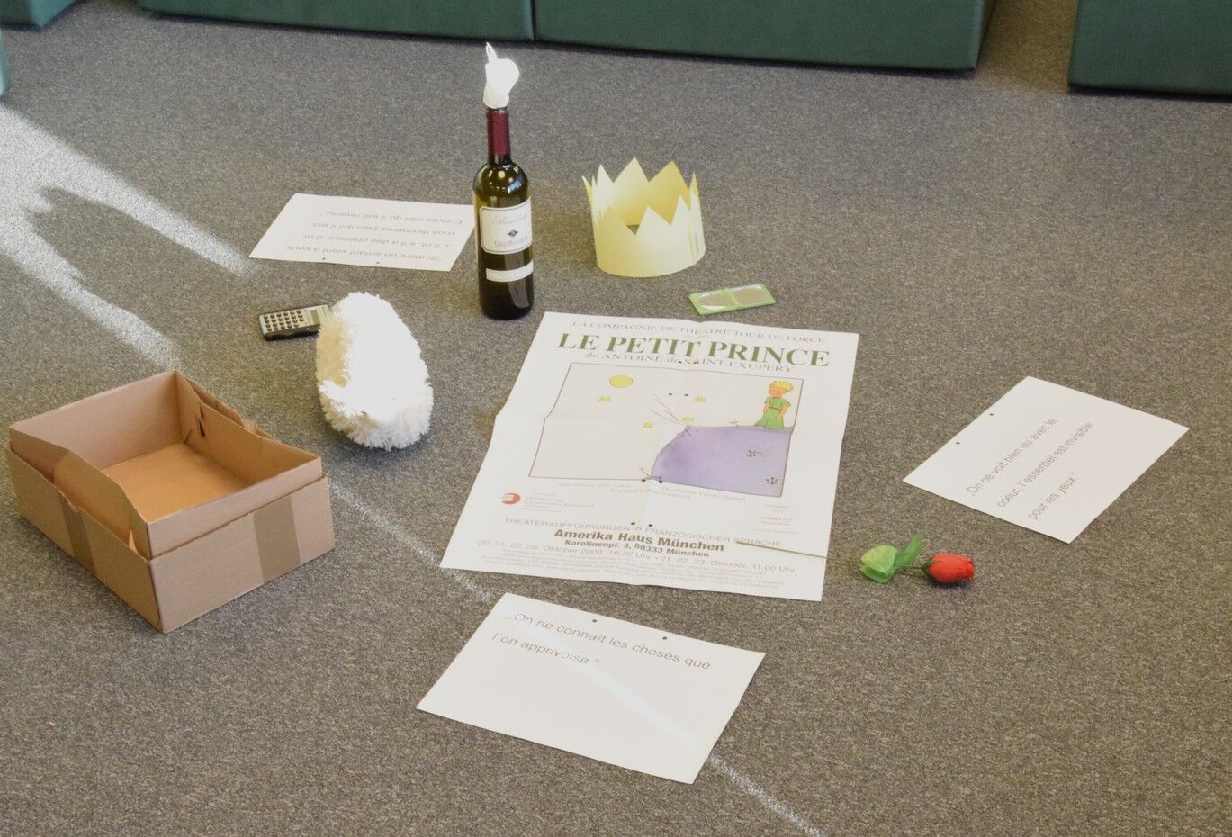 Parallel zur klassischen Lektüre von Buch und Hörspiel besuchte der Französisch-Kurs die Theaterproduktion„Der Kleine Prinz“ am 29. März an derBayerischen Staatsoper in München. In dem Stück gab es nur die Figur des Piloten, die von einem Schauspieler gespielt wurde. Alle weiteren Figuren, der Kleine Prinz, die Rose, die Schlange, der Fuchs, der Laternenanzünder, der König, der Weichensteller und der Eitlewurden von sieben Tänzern verkörpert. Das Unsichtbare, das Antoine de Saint-Exupérys weltberühmte Geschichte in symbolhaft-assoziativen Bildern einfängt, transformierte der Choreograph Maged Mohamed in Bewegung und Tanz. Musikalisch wurde die Geschichte des Kleinen Prinzen von sechs Mitgliedern der Bayerischen Staatsoper auf ihren Instrumenten zu Stücken von Darius Milhaud und Erik Satie erzählt. Obgleich das direkt gesprochene Wort fehlte, erzählte die Körpersprache der Tänzer bzw. die Sprache der Musik die Geschichte des Kleinen Prinzen auf beeindruckende Weise. Man „hörte“ förmlich im Sehen z.B. die kokett-erotische Stimme der Rose oder die majestätisch-dominanteRedeweise des Königs -von Tänzern durch die Sprache ihres Körpers zum Ausdruck gebracht. Silvia Betz
