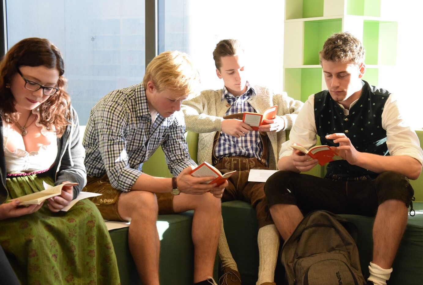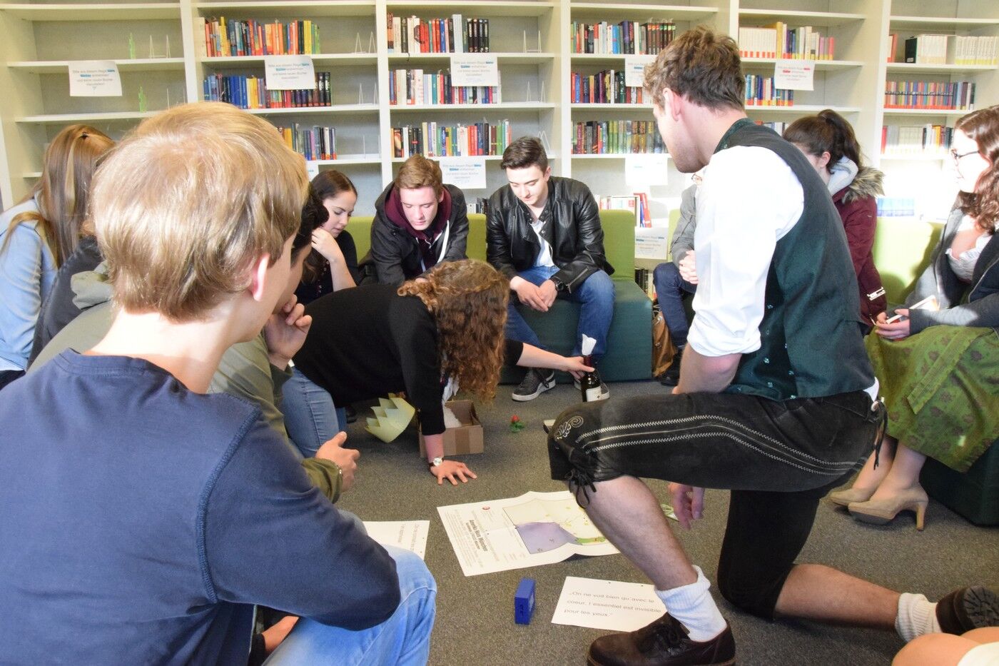 Und wo lässt es sich besser und bequemer in eine Lektüre bzw. in einen Sitzsack eintauchen als in der neuen Bibliothek?Wo lässt es sich unkomplizierter und ungezwungener über Liebe und Freudschaft und deren Unterschiede diskutieren als in einen Raum, der innenarchitektonisch zum gemeinsamen Diskutieren genauso einlädt wie zum stillen Nachdenken inspiriert?