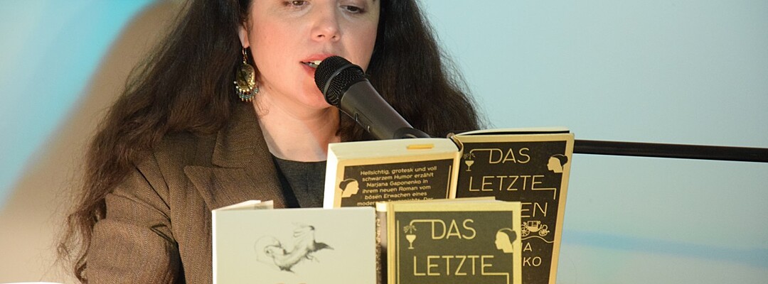 In ihrem neuesten Roman „Das letzte Rennen“ geht es um den Vater Adam, einen erfolgreichen Pferdezüchter, und seinen Sohn, einem Nichtsnutz, der den väterlichen Reichtum genießt, aber in seinem Leben nichts auf die Reihe bekommt. Er bleibt in Abhängigkeit vom Vater. Marjana Gaponenko rückt ihrem Roman nicht so sehr das Taugenichts-Motiv oder auch den Vater-Sohn-Konflikt in den Mittelpunkt, sondern sie wirft einen kritischen Blick auf die Gesellschaft. „Kaspar, der Sohn und Ich-Erzähler, ist von super Kapitalisten umgeben“, sagte Marjana Gaponenko. „Wie geht es so einem jungen Menschen, der in einer solchen Umgebung aufwächst? Man soll sich stets Gedanken machen, wie man sein Leben leben soll.“ Ein Happy End gibt es nicht. Das liege ihr nicht, so Gaponenko. Das Rennen gewinnen in ihrem Roman die Frauen, nicht die Männer. „Frauen wissen im Leben, was Sache ist. Sie nehmen ihr Schicksal selber in die Hand.“