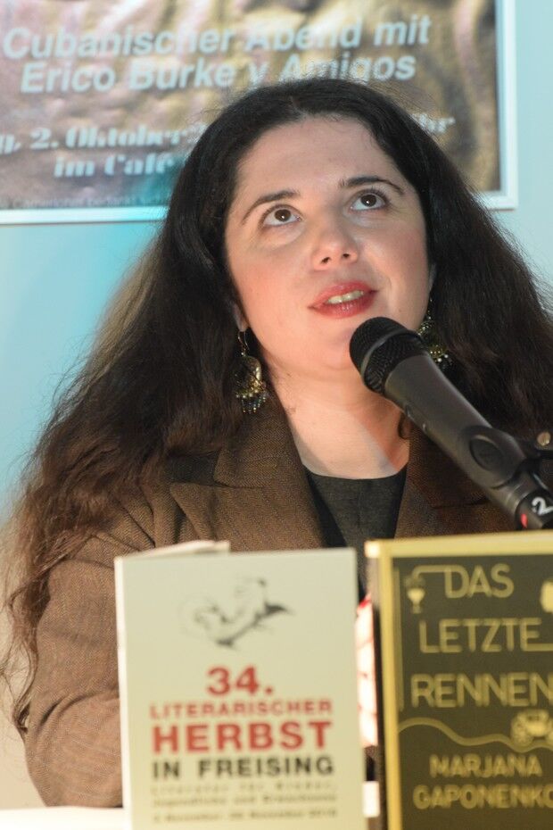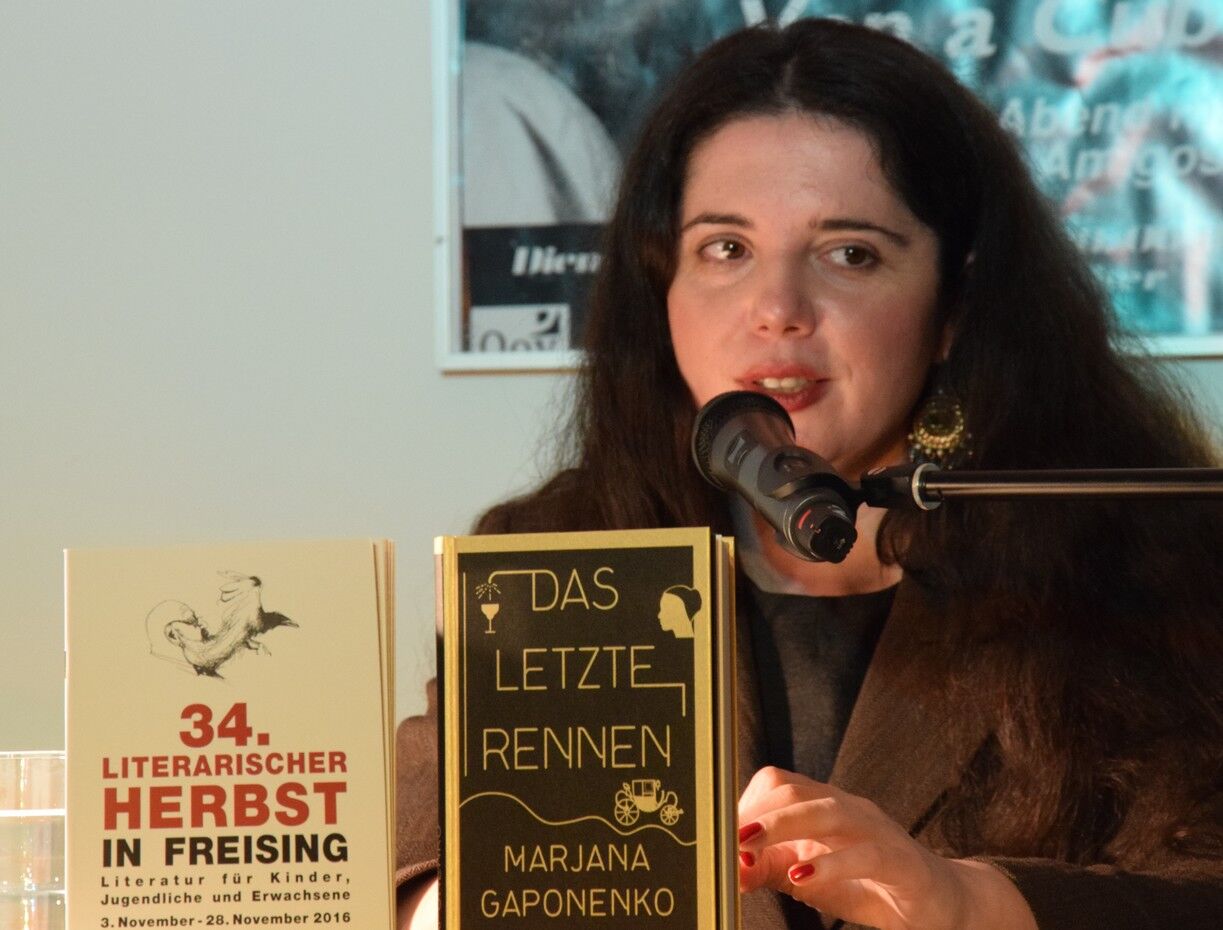 Der Literarische Herbst, organisiert vom modern studio freising, machte auch in diesem Jahr wieder Station im Café Camerloher. Zu Gast war am Donnerstagabend (17.11.2016) Marjana Gaponenko. Sie las aus ihrem jüngsten Roman „Das letzte Rennen“.