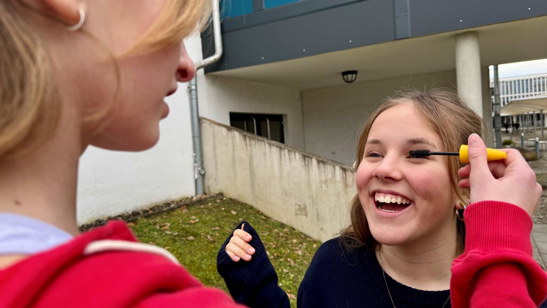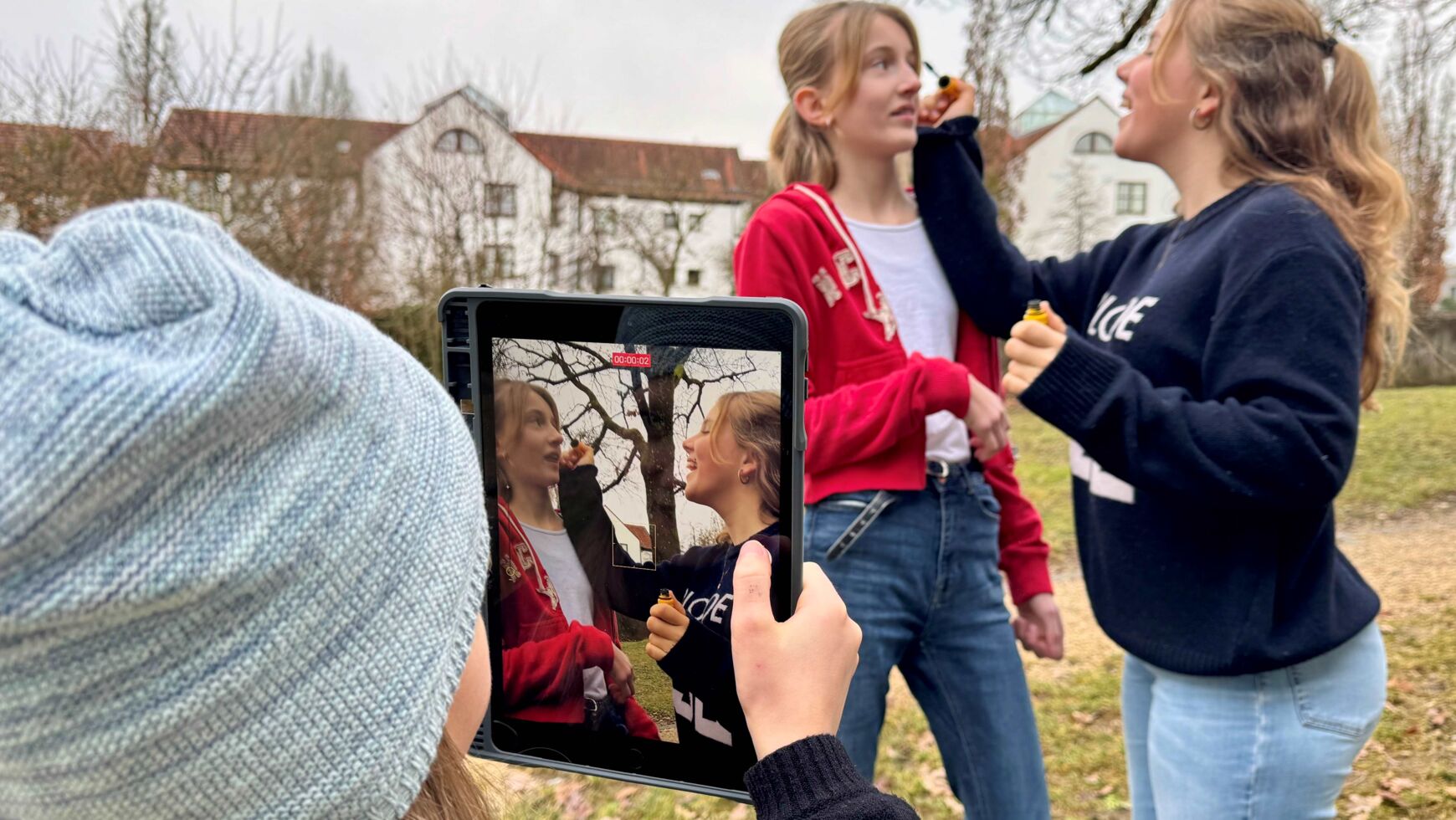 In einem ersten Zugang wurden einige bekannte Influencer vorgestellt. Damit die Jugendlichen erkennen, wie professionell und aufwändig die Clips der Influencer gedreht sind, die scheinbar so mühelos und wie einfach nebenbei gefilmt daherkommen, durften sie versuchen, wie ein „echter“ Influencer einen kurzen Videoclip aufzunehmen, indem sie ein Produkt bewerben: Energy-Pulver, Mascara, Nagellack, Cappuccino-Kaltgetränke oder das Paluten-Buch lagen zur Auswahl bereit. Mit einem IPad ausgestattet machten sich jeweils kleine Gruppen von drei oder vier Schülern auf den Weg, den idealen Spot auf dem Schulgelände für ihren selbst gedrehten Clip zu finden. Diese Übung wurde von den meisten als Highlight des Tages empfunden, weshalb sich alle sehr viel Mühe bei ihren eigenen Clips gegeben haben. Im Anschluss wurden die Kurzfilme in der Klasse angeschaut, besprochen und teilweise mit den Originalclips der Influencer verglichen – es waren sehr einfallsreiche und fast professionelle anmutende Clips dabei. Ziel des Tages war, den Jugendlichen die Werbemaschinerie hinter den oft so lässig und cool anmutenden Influencer-Clips vor Augen zu führen und sie so zu einem reflektierten und selbstbestimmten Verhalten im Netz und in der analogen Welt anzuleiten.