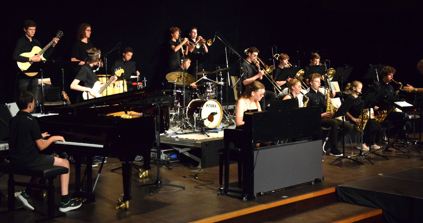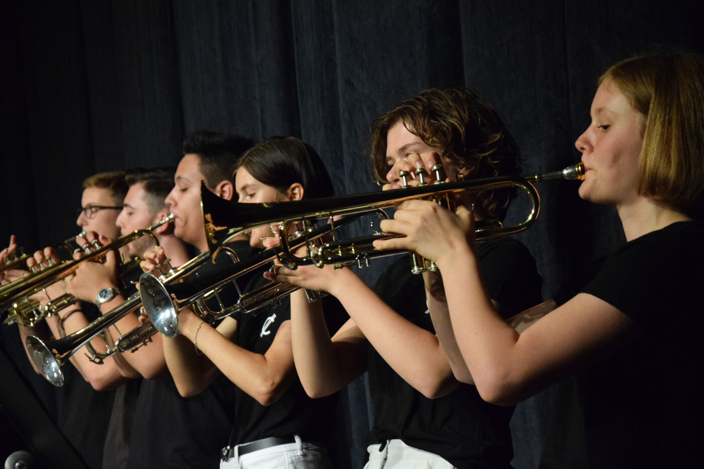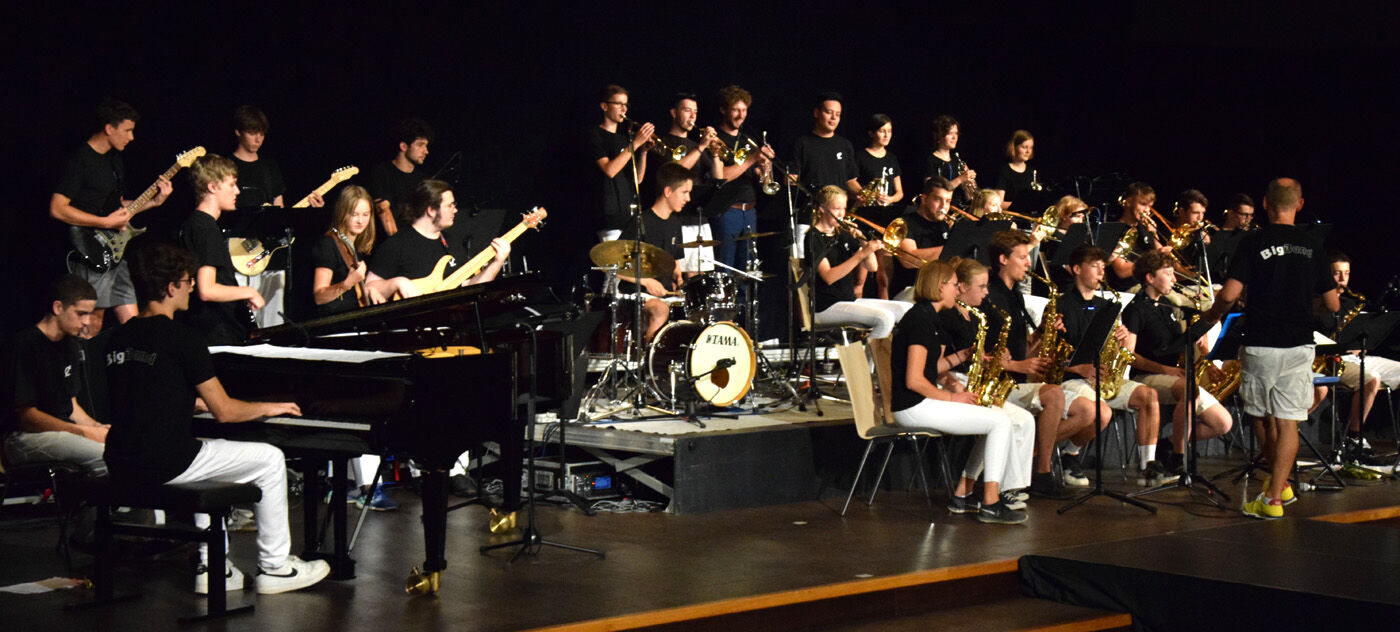 Am letzten Donnerstag im Juni kehrte unsere Bigband unter der Leitung von Gunther Fendler mit einem rhythmischen Feuerwerk in der Schulaula aus der Corona-Pause zurück. Es wurde dabei Unterhaltung für jedes Alter geboten: Von Swing über Blues und Latin bis hin zu Rock war alles dabei.