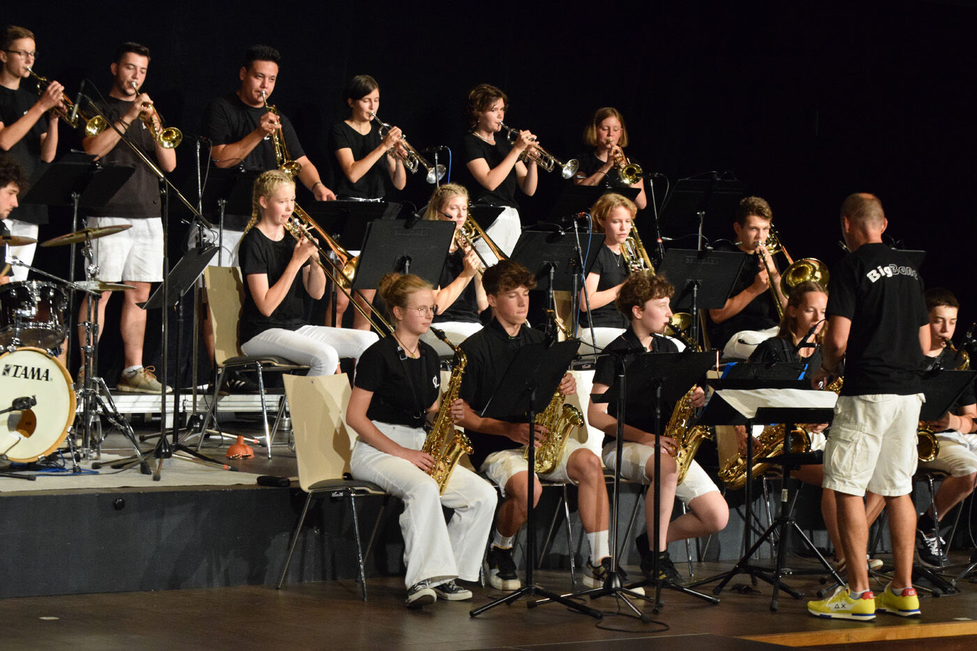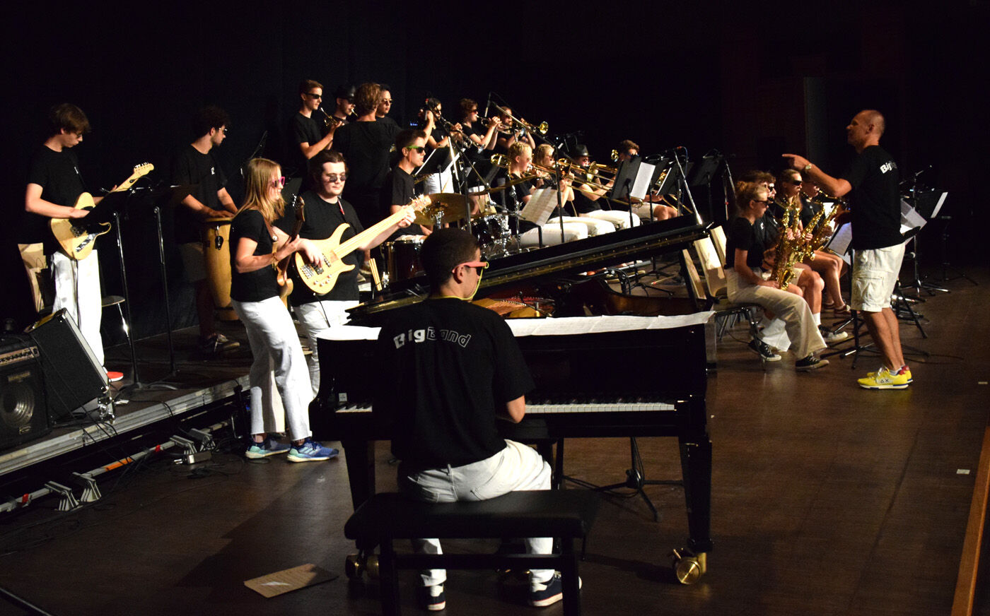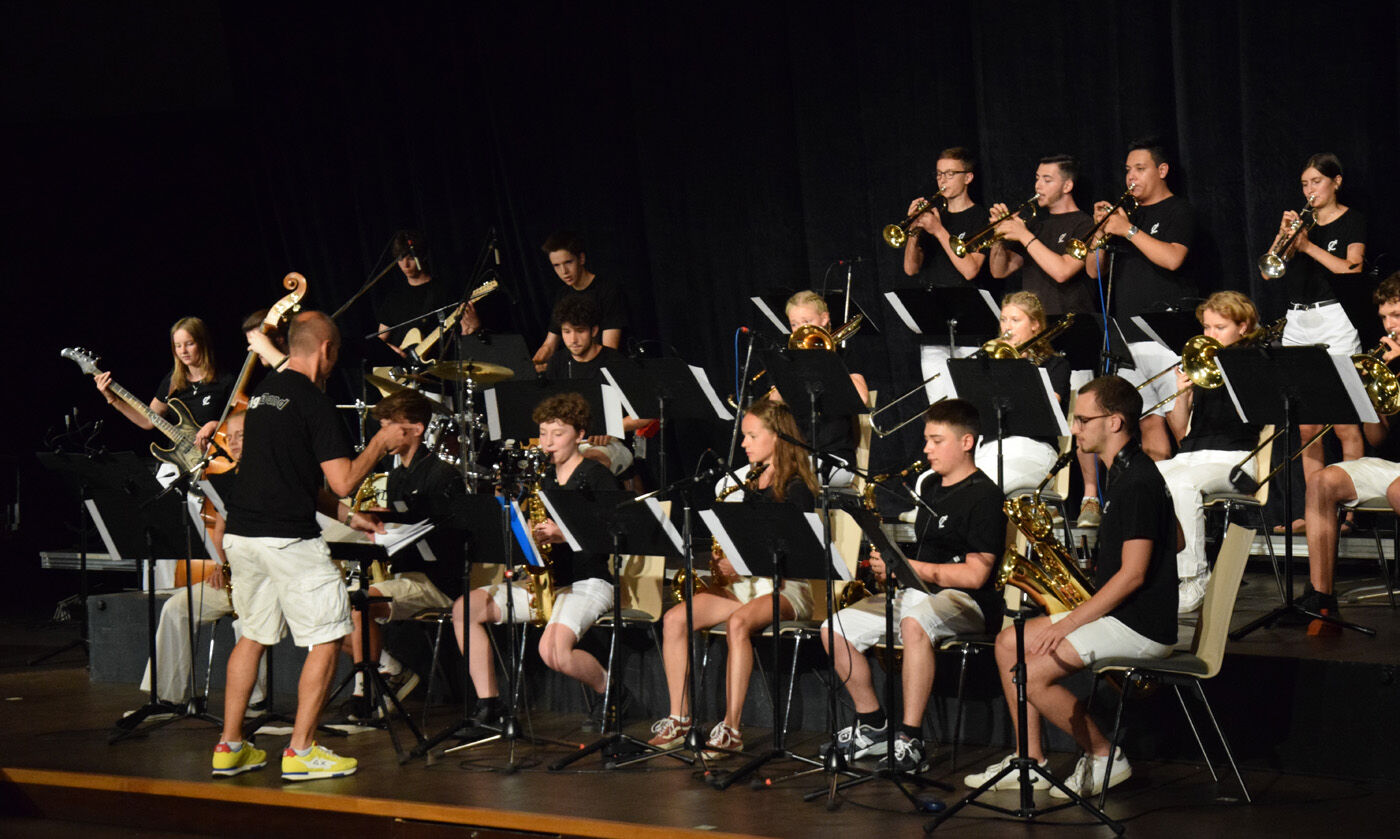 Am letzten Donnerstag im Juni kehrte unsere Bigband unter der Leitung von Gunther Fendler mit einem rhythmischen Feuerwerk in der Schulaula aus der Corona-Pause zurück. Es wurde dabei Unterhaltung für jedes Alter geboten: Von Swing über Blues und Latin bis hin zu Rock war alles dabei.