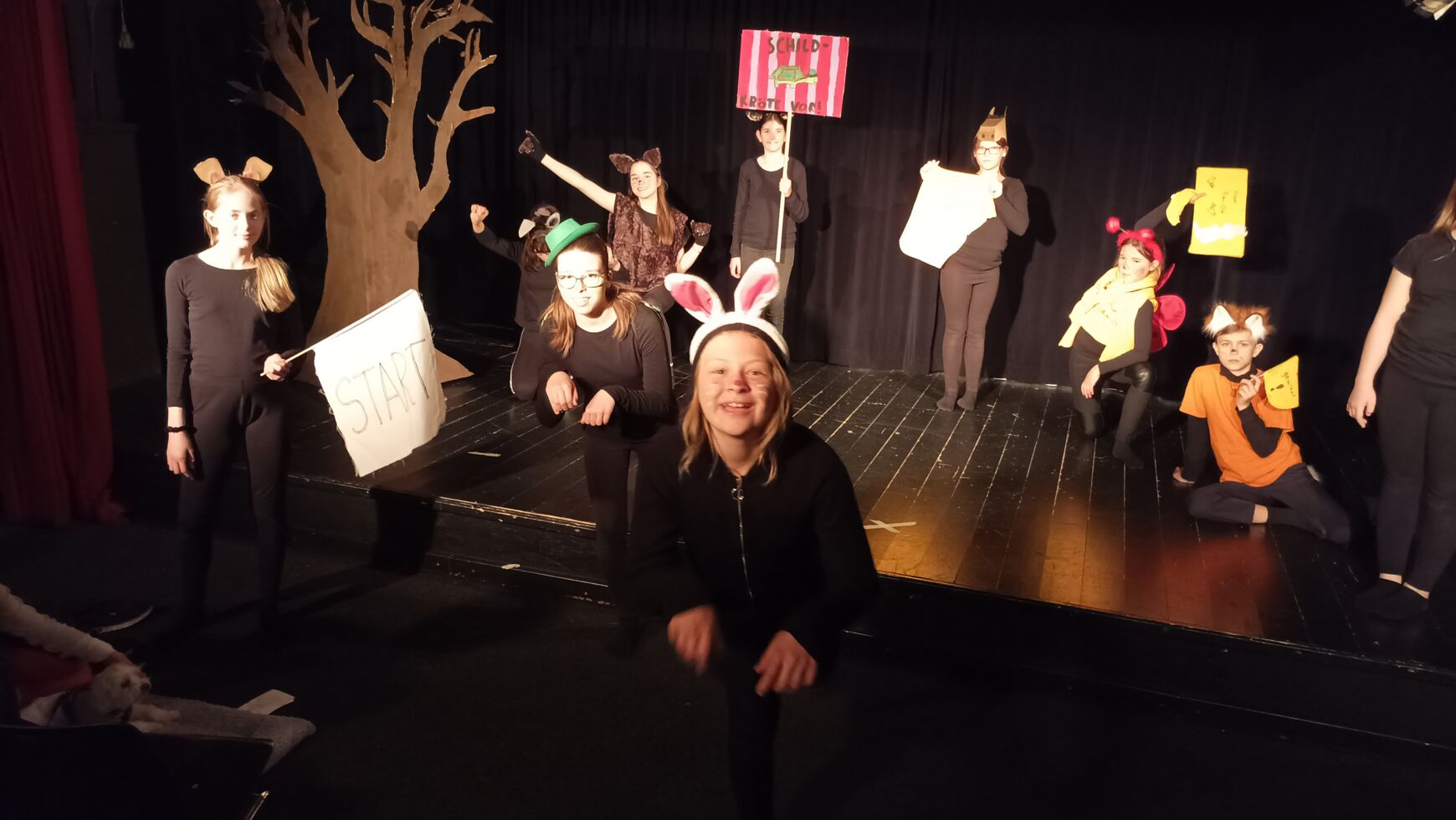 Unter dem Motto „Fabelhaftes Fabeltheater“ präsentierten die Schülerinnen und Schüler der Theaterklasse 5C am Montag, den 30. Mai 2022 vormittags vor den Klassen 6B und 6C sowie abends vor Familienangehörigen und Freunden ihr diesjähriges Theaterstück.