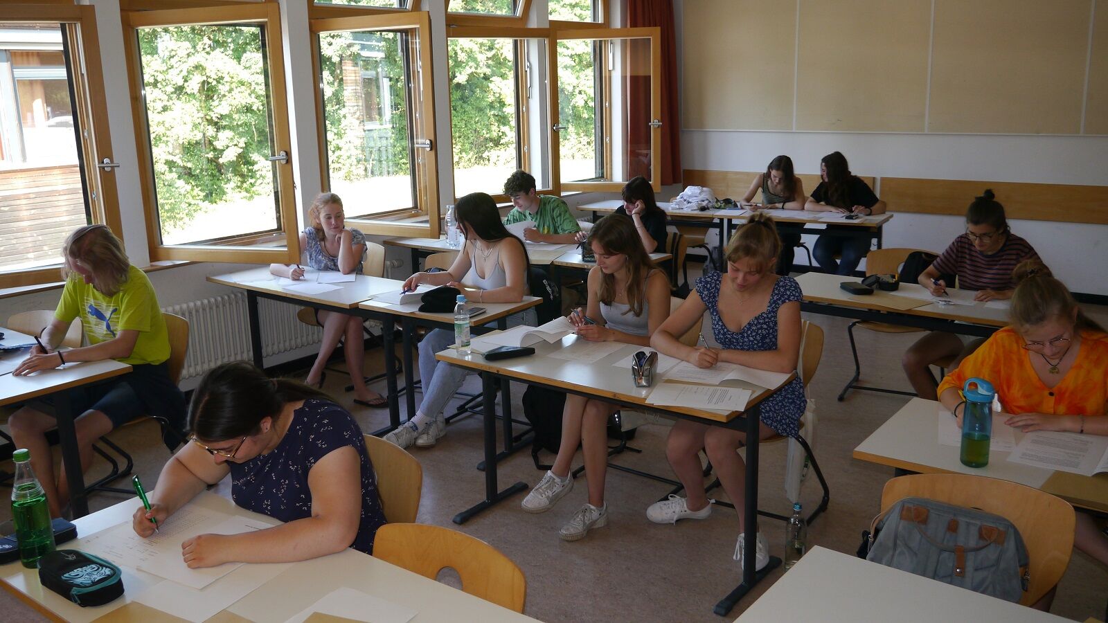 Den SFBT gibt es dabei für sechs verschiedene Studienrichtungen, wie z.B. Naturwissenschaften oder Sprachwissenschaften. Nach einer kurzen Einführung von Frau Altenbuchinger-Dick ging es auch direkt los. Bei hochsommerlichen Temperaturen galt es sich zu konzentrieren und die teilweise sehr anspruchsvollen Aufgaben bestmöglichst zu lösen. Direkt im Anschluss an die Bearbeitung der Tests wurden diese ausgewertet und auf Wunsch konnten die Teilnehmerinnen und Teilnehmer ein individuelles Rückmeldegespräche mit der Psychologin Frau Hawranek führen. Die anderen Schülerinnen und Schüler erhalten ihre Ergebnisse dann in schriftlicher Form zeitnah per Post. Mit diesen Rückmeldungen können sie sich dann bei Bedarf an ihre zuständige Berufsberaterin Frau Altenbuchinger-Dick für weitere Beratungen wenden.
