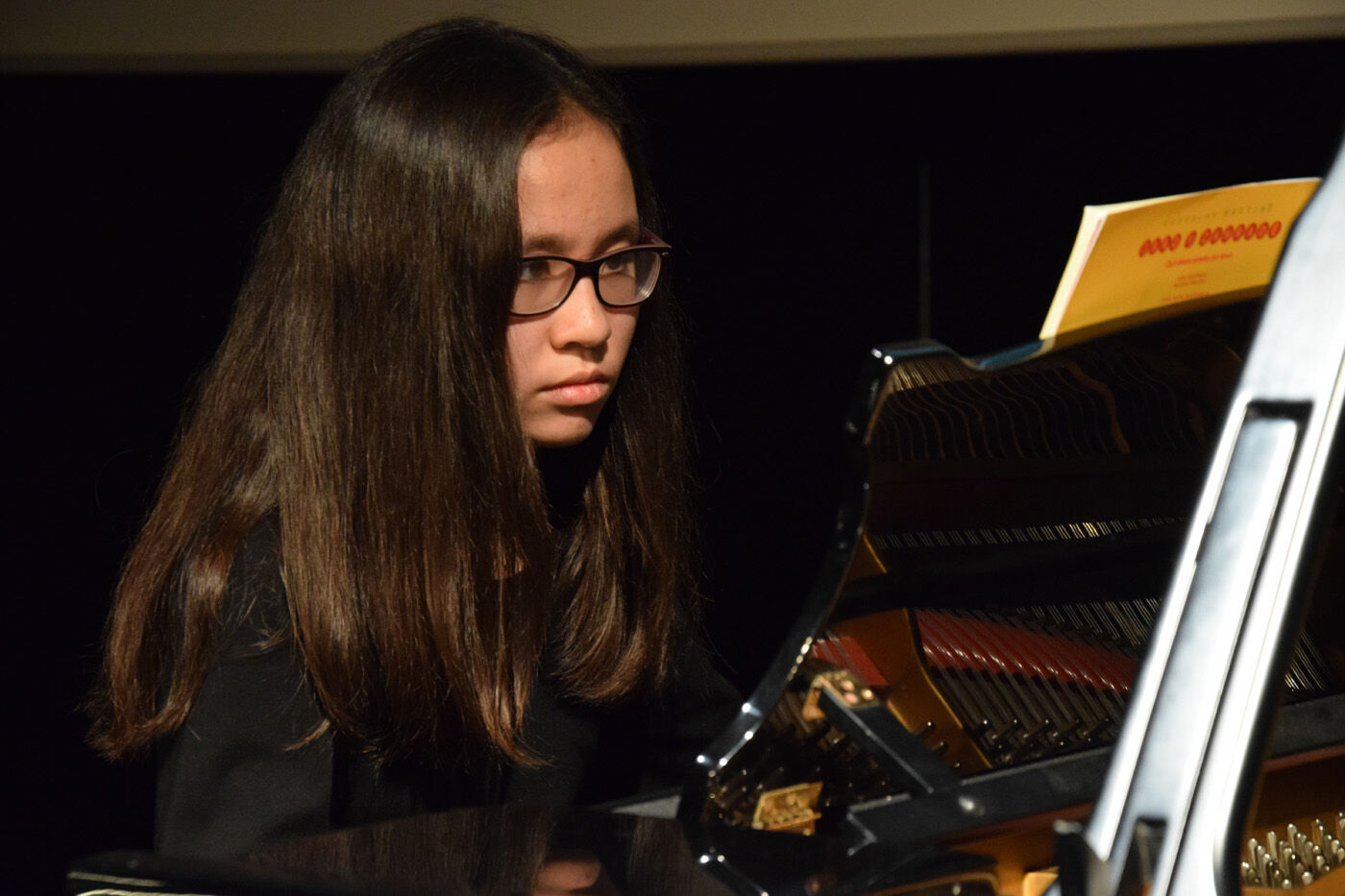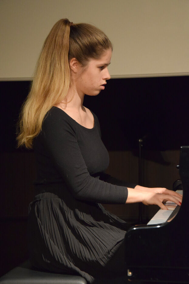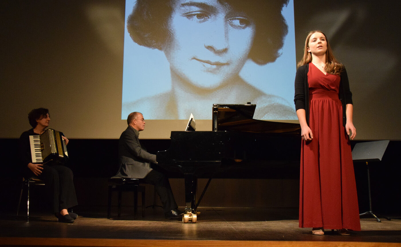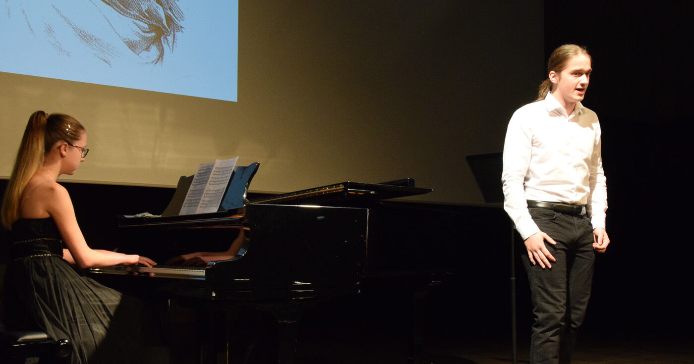 In der Tat präsentierten die Schülerinnen und Schüler, von der fünften Jahrgangsstufe bis zur zwölften, sehr anspruchsvolle Stücke, die aufgrund ihrer Thematik manchmal unter die Haut gingen. Das war beispielsweise bei Ilse Webers Lied „Ich wandere durch Theresienstadt“, gesungen von Miriam Fußeder (Sopran), der Fall. Es dauerte einige Zeit, bis das Publikum es wagte zu applaudieren, um danach in der Pause genügend Zeit zu haben, dieses Lied zu verarbeiten.