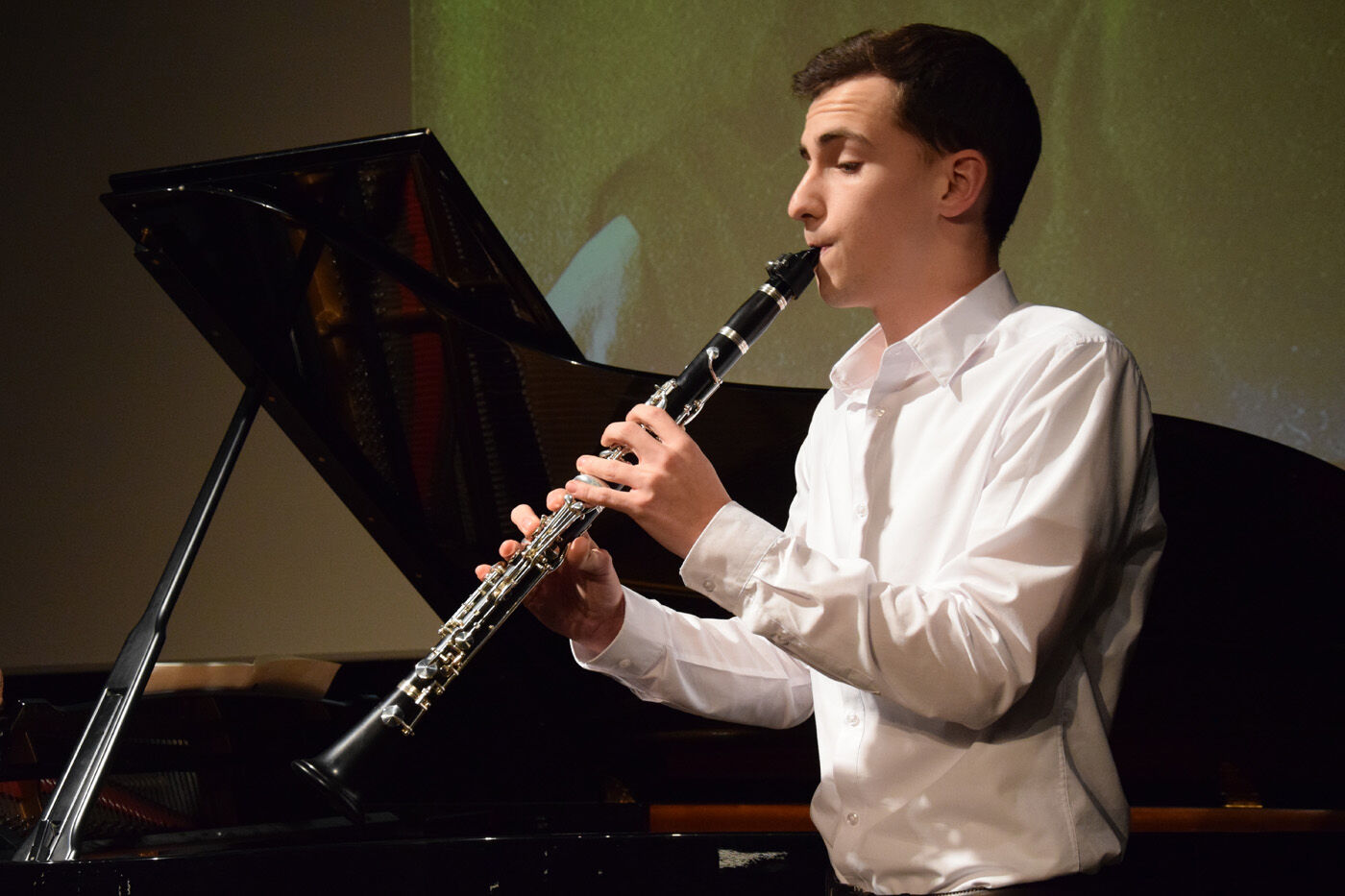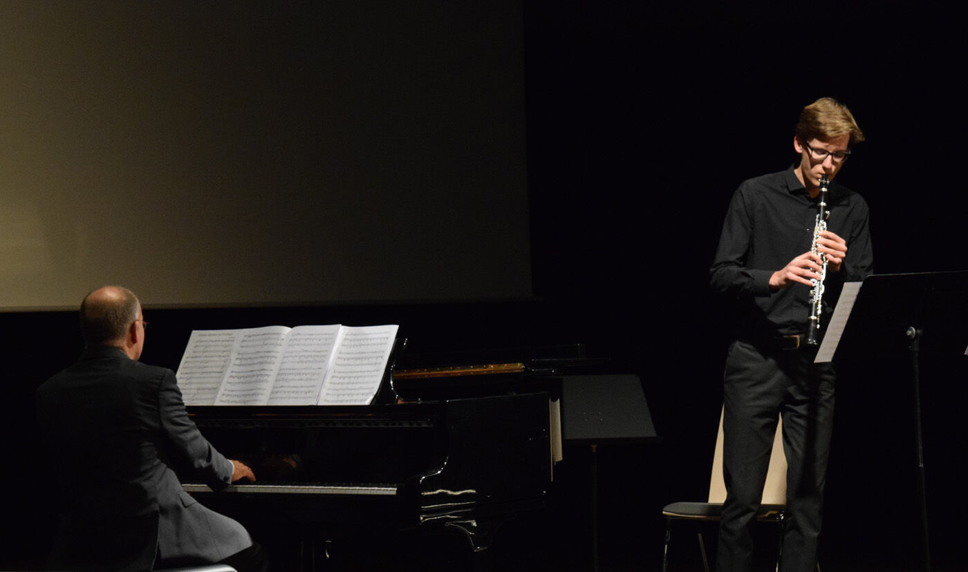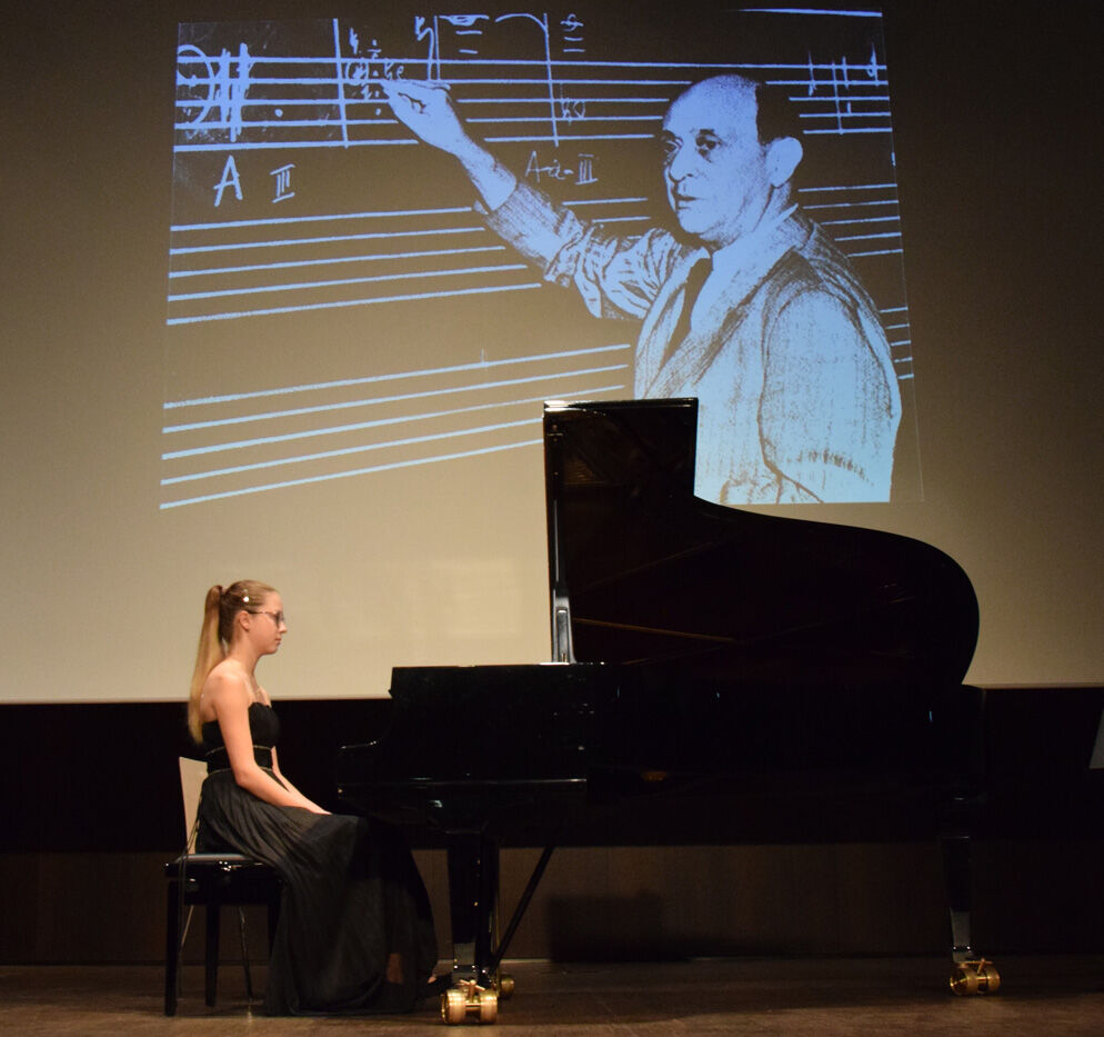 Da Solistenkonzert startete mit Felix Mendelssohn-Bartholdys „Venezianisches Gondellied“ mit Carla Gromann am Klavier. Danach folgten: Gabriel Rupp (Gesang, Bass) und Larissa Höcherl (Klavier) mit Giacomo Meyerbeers „Komm, du schönes Fischermädchen“; Felix Rahimpour (Klavier) mit Walter Braunfels‘ „Lyrischer Kreis“; Cosima Schwaiger (Violone) und Rosa Matos Mendoza (Violine) mit Bela Bartoks „Duos für zwei Violinen“; Evelyn Buchberger (Cello) und Kristina Hölzl (Klavier) mit Bela Bartoks „Rhapsodie Nr.1“; Franziska Schimming (Klavier) mit Bohuslav Martinus „Die neue Puppe“ und „Ich denke, dass ich schlafen gehen solle“; Daniel Kuen (Cello) begleitet von Lukas Kuen (Klavier) mit Bohuslav Martinus „Variationen über ein slowakisches Thema“; Miriam Fußeder (Sopran) begleitet von Birgit Brennich (Akkordeon) und Thomas Noichl (Klavier) mit Ilse Webers „Wiegala“ und „Ich wandere durch Theresienstadt“; Katharina Eglhuber (Violine) und Clara Eglhuber (Cello) mit Zykmund Schuls „Zwei Chassidische Tänze“; Johannes Wiederhofer mit Paul Hindemiths „Interludum und Fuga tertia“; Mathias Melzer (Oboe) begleitet von Franziska Wagner (Klavier) mit Paul Hindemiths „Sonate für Oboe und Klavier“; Larissa Höcherl mit Arnold Schönbergs „3 Klavierstücke“; Bartholomäus Schlüter (Klarinette) begleitet von Thomas Noichl mit Alban Bergs „Vier Stücke“; Magdalena Pellmaier (Cello) und Pauline Neumann (Klavier) mit Anton Weberns „Zwei Stücke“, Cordula Kraetzl (Sopran) mit Erich Wolfgang Korngolds „Glückwunsch“; Charlotte von Urff (Oboe) mit Ernst Kreneks „Sonatine für Oboe solo“; Luis Weidlich (Klarinette) begleitet von Thomas Noichl mit Bela Kovacs‘ „Sholem Alekhem, Rov Feidmann!“. Lang anhaltender Applaus am Ende des Solistenkonzerts für einen beeindruckenden Abend. sp
