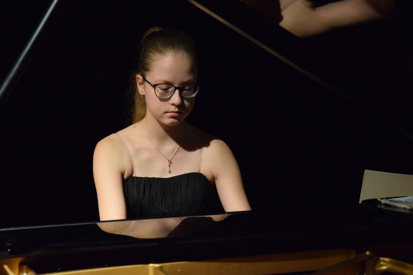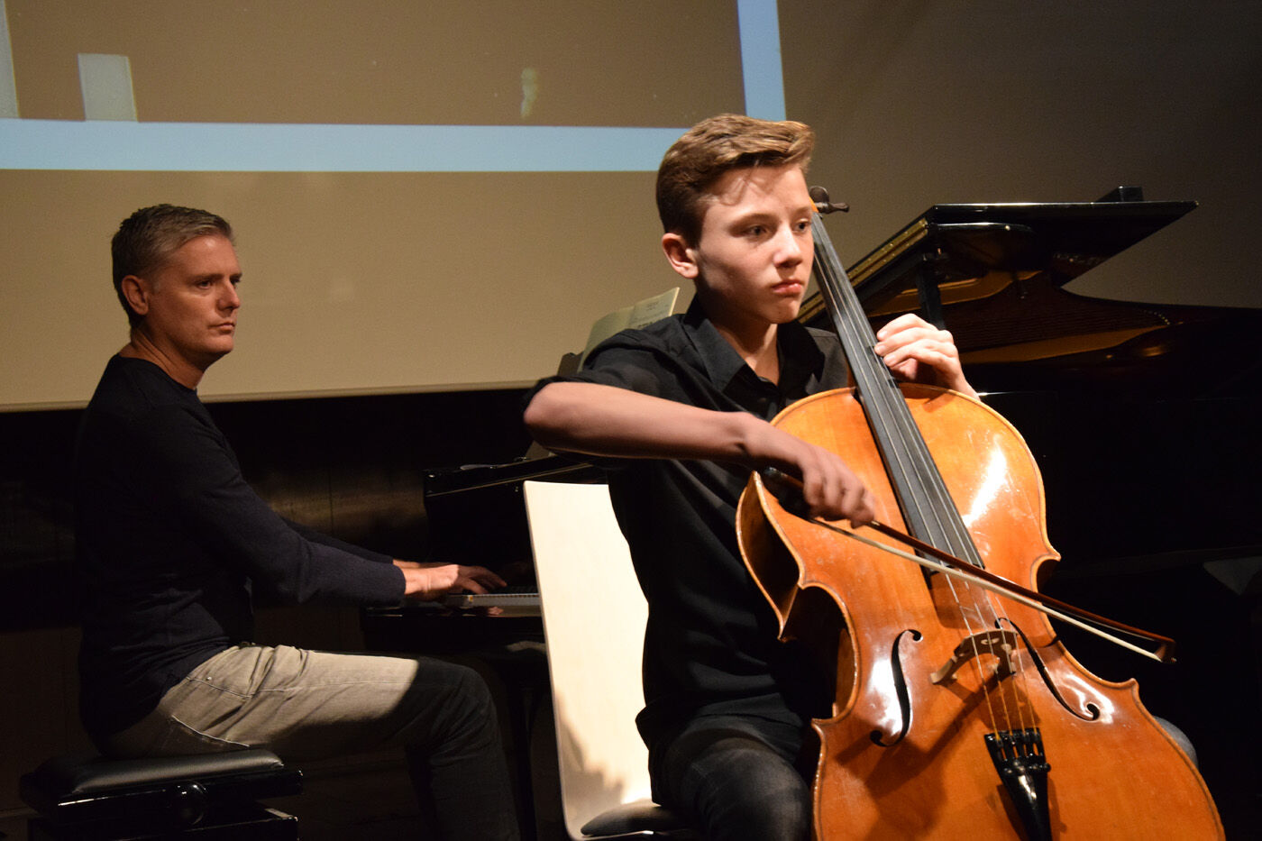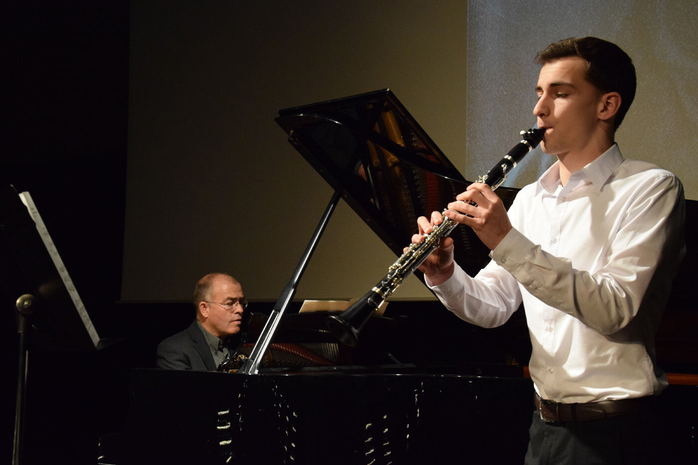 Da Solistenkonzert startete mit Felix Mendelssohn-Bartholdys „Venezianisches Gondellied“ mit Carla Gromann am Klavier. Danach folgten: Gabriel Rupp (Gesang, Bass) und Larissa Höcherl (Klavier) mit Giacomo Meyerbeers „Komm, du schönes Fischermädchen“; Felix Rahimpour (Klavier) mit Walter Braunfels‘ „Lyrischer Kreis“; Cosima Schwaiger (Violone) und Rosa Matos Mendoza (Violine) mit Bela Bartoks „Duos für zwei Violinen“; Evelyn Buchberger (Cello) und Kristina Hölzl (Klavier) mit Bela Bartoks „Rhapsodie Nr.1“; Franziska Schimming (Klavier) mit Bohuslav Martinus „Die neue Puppe“ und „Ich denke, dass ich schlafen gehen solle“; Daniel Kuen (Cello) begleitet von Lukas Kuen (Klavier) mit Bohuslav Martinus „Variationen über ein slowakisches Thema“; Miriam Fußeder (Sopran) begleitet von Birgit Brennich (Akkordeon) und Thomas Noichl (Klavier) mit Ilse Webers „Wiegala“ und „Ich wandere durch Theresienstadt“; Katharina Eglhuber (Violine) und Clara Eglhuber (Cello) mit Zykmund Schuls „Zwei Chassidische Tänze“; Johannes Wiederhofer mit Paul Hindemiths „Interludum und Fuga tertia“; Mathias Melzer (Oboe) begleitet von Franziska Wagner (Klavier) mit Paul Hindemiths „Sonate für Oboe und Klavier“; Larissa Höcherl mit Arnold Schönbergs „3 Klavierstücke“; Bartholomäus Schlüter (Klarinette) begleitet von Thomas Noichl mit Alban Bergs „Vier Stücke“; Magdalena Pellmaier (Cello) und Pauline Neumann (Klavier) mit Anton Weberns „Zwei Stücke“, Cordula Kraetzl (Sopran) mit Erich Wolfgang Korngolds „Glückwunsch“; Charlotte von Urff (Oboe) mit Ernst Kreneks „Sonatine für Oboe solo“; Luis Weidlich (Klarinette) begleitet von Thomas Noichl mit Bela Kovacs‘ „Sholem Alekhem, Rov Feidmann!“. Lang anhaltender Applaus am Ende des Solistenkonzerts für einen beeindruckenden Abend. sp