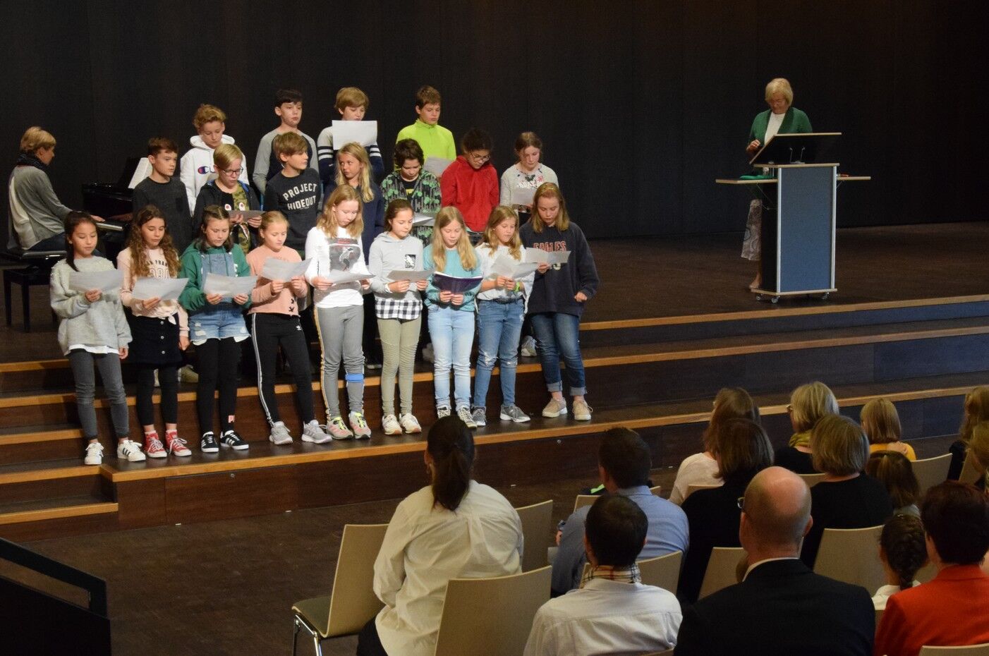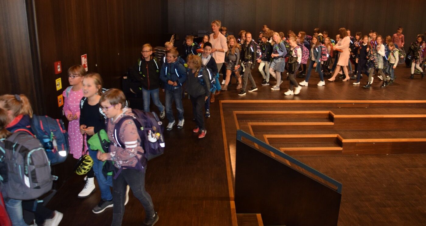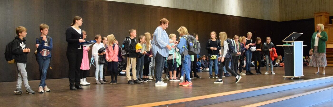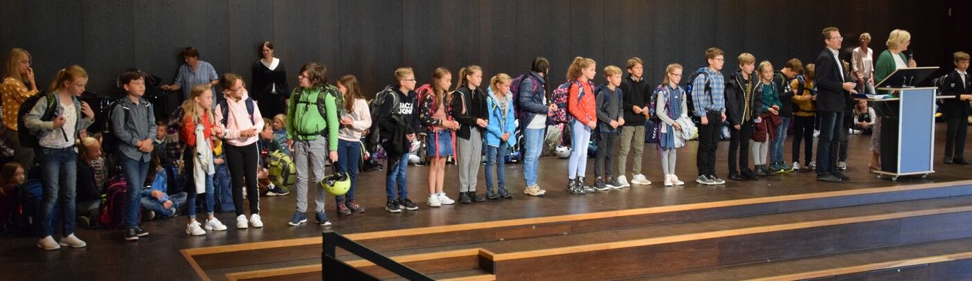 Am ersten Schultag begrüßte Schulleiterin Andrea Bliese zusammen mit den Klassenleitungen die neuen Fünftklassler in der Aula. Heuer sind es 115 Schülerinnen und Schüler verteilt auf fünf Klassen, darunter auch eine gebundene Ganztagsklasse.