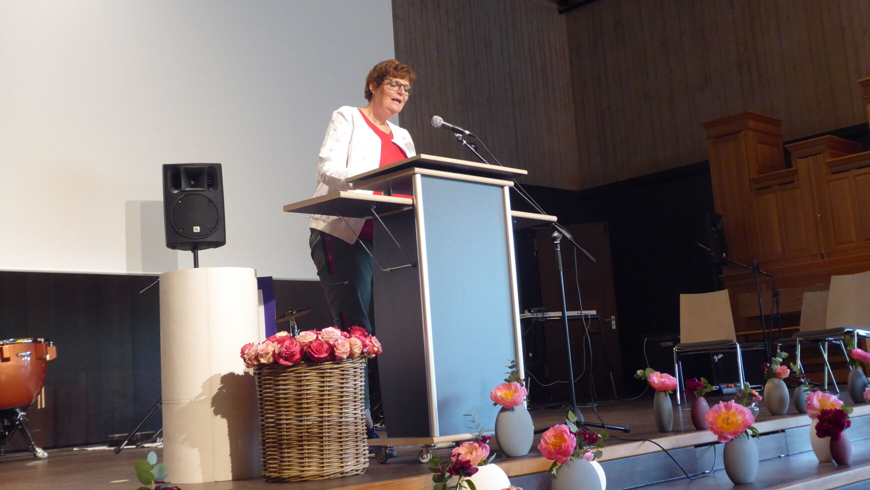 Auch die stellvertretende Landrätin Anita Meinelt griff in ihrem Grußwort den Abitursong auf. Sie appellierte zudem an die Abiturientinnen und Abiturienten, mutig zu bleiben und für ihre Ziele und ihre Zukunft einzutreten. Des Weiteren zeichnete sie die vier besten Schülerinnen mit dem Traumschnitt von 1,0 aus: Isabel Berg, Amelie Daude, Eva Schuster und Franka Toma erhielten für ihre sehr guten Leistungen ein kleines Geschenk des Landkreises. Auch die Schulreferentin der Stadt Freising, Frau Monika Riesch, zeichnete für die Stadt Freising die besten des Jahrgangs aus. Neben den genannten erhielten auch Mariella Weichinger und Sehmuel Wagner (jeweils mit einem Abidurchschnitt von 1,1) Präsente. Sie rief die jungen Erwachsenen dazu auf, dem Camerloher verbunden und der Stadt Freising treu zu bleiben.