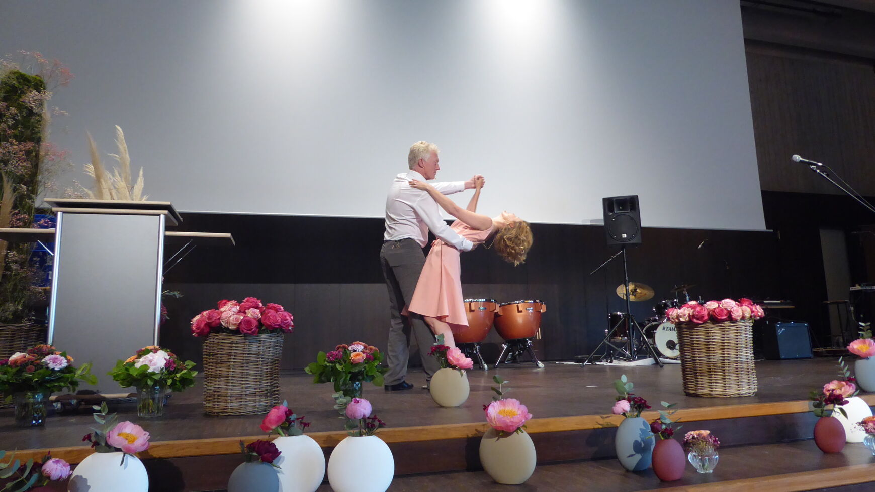 Einen Höhepunkt der diesjährigen Abiturfeier bildete die Lehrerrede von Silvia Betz und Jochen Meyer, die sich nicht nur outfitmäßig an Baby und Johnny orientierten, sondern „Dirty Dancing“ auch zahlreiche Zitate entlehnten („Ich habe eine Wassermelone getragen!“) und damit sowie mit einer Vielzahl von Insidern etliche Lacher auf ihrer Seite hatten. Dem stand die Schülerrede von Chiara Simonis, Lukas Rentz und Amelie Daude in nichts nach. Sie ließen auf witzige Weise verschiedene Momente ihres Schullebens Revue passieren und dankten ihren Lehrkräften für ihren Einsatz und ihr Engagement.