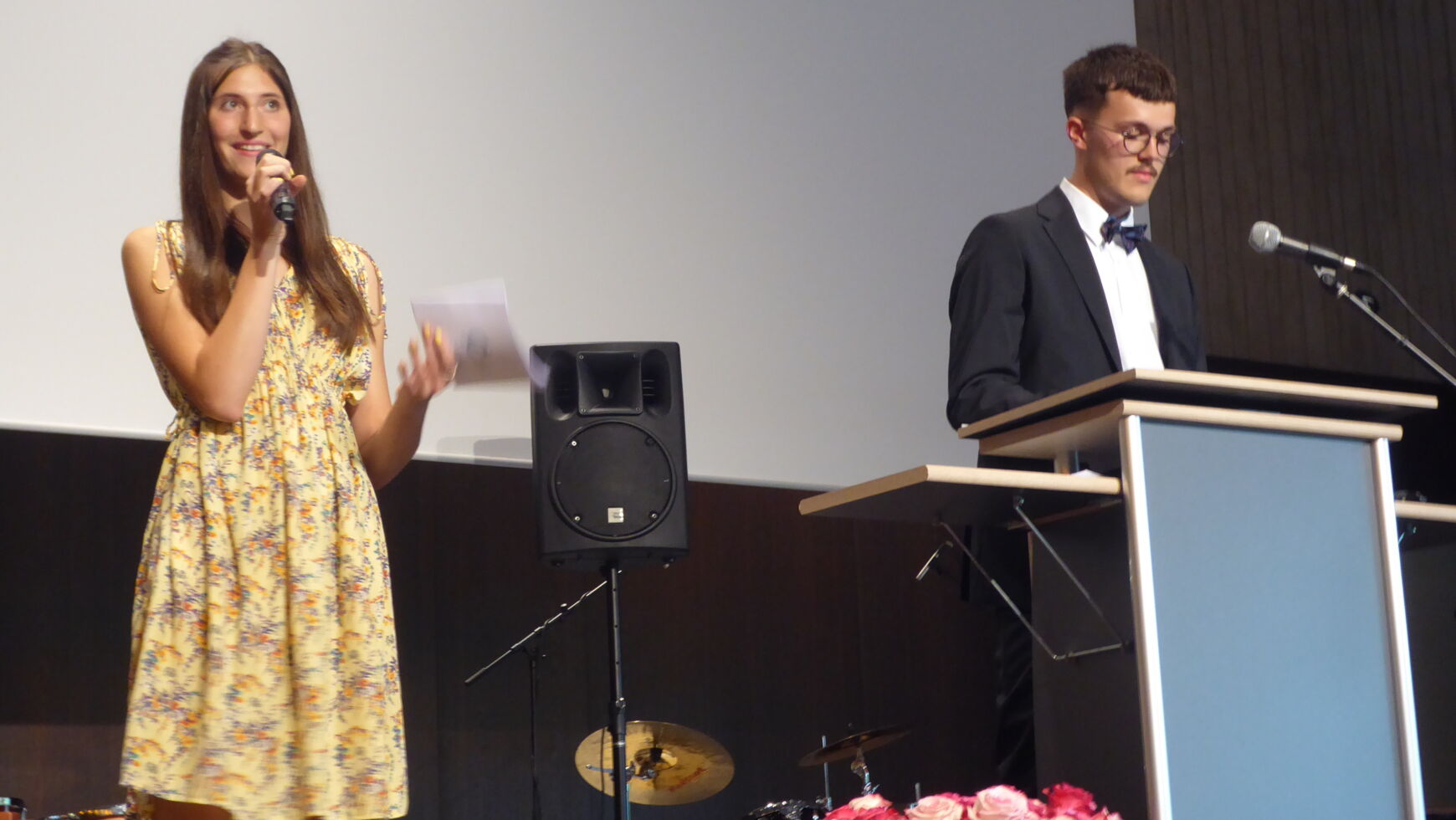 Auch die Elternbeiratsvorsitzende, Frau Andrea Thomas, und der Vorsitzende des Fördervereins, Herr Peter Spanrad, gratulierten in kurzen Grußworten den Abiturientinnen und Abiturienten zum bestandenen Abitur. Andrea Thomas wünschte den ehemaligen Schülerinnen und Schülern einen magischen Sommer der Freiheit. In ihrer Zeit am Camerloher hätten sie gelernt, sich sicher auf der Tanzfläche des Lebens zu bewegen. Der Förderverein zeichnete zudem 14 Abiturientinnen und Abiturienten für ihr ganz besonderes soziales Engagement aus – sei es für ihren überdurchschnittlichen Einsatz als Schulsanitäter/-in, im Camerett, als Schülervertreter/-in oder im musischen Bereich.
