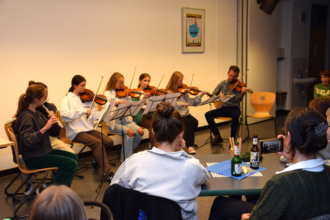 Dort musizierten nämlich die Schülerinnen und Schüler aus Edinburgh und Freising gemeinsam. Außerdem wurde mittels einer Fotoshow das vielfältige Programm des Austausches noch einmal lebendig. Neben Unterrichtsbesuchen in den neunten Klassen stand des Weiteren nicht nur der Besuch Münchens auf dem Plan, sondern auch Regensburg und Salzburg konnten bei bestem Wetter erkundet werden.
