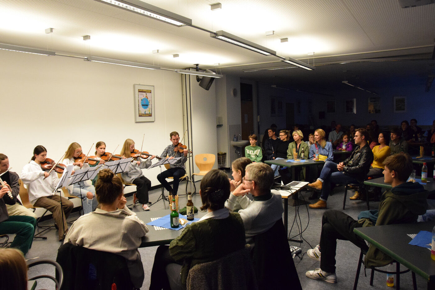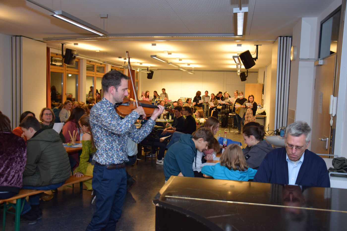 Ein Highlight des Abschlussabends - ja sogar des gesamten Austausches - war unbestritten die Dudelsack-Einlagen eines schottischen Austauschschülers, die auf Grund des durchdringenden Instruments im Freien stattfanden und die Vorfreude der Camerloher-Schülerinnen und Schüler in Schottland im Frühjahr 2023 noch mehr steigerten - auch wenn beim dreisprachigen Singen von "Brüder nehmt Abschied" (auf Englisch, Französisch und Deutsch) erst einmal die Wehmut überwog.