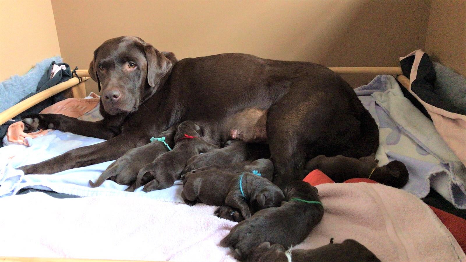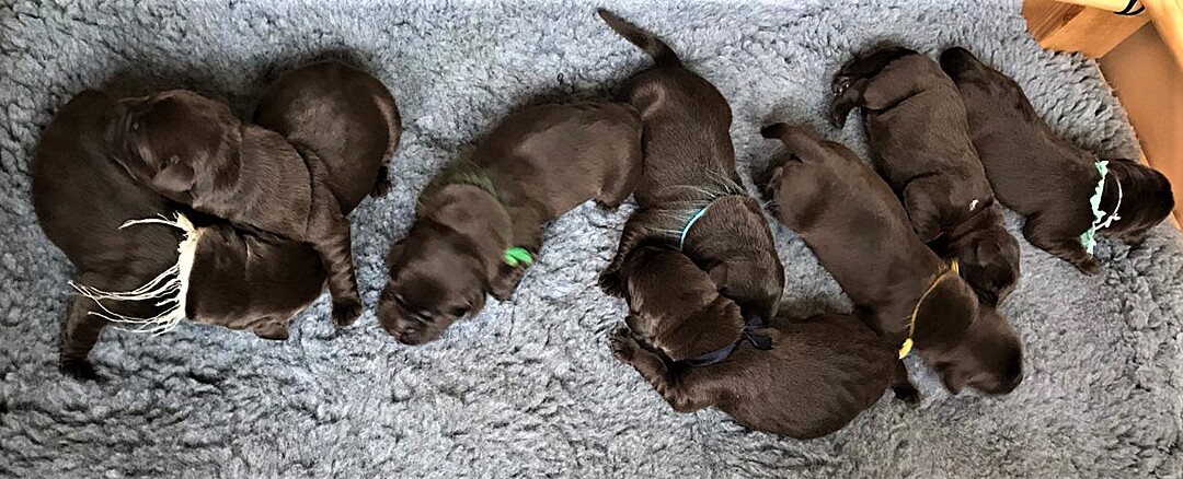 Freudige Nachrichten: Unser Schulhund Fanny hat letzte Woche acht Welpen geboren. Die Geburt bzw. die Geburtsorte gestalteten sich durchaus abwechslungsreich - vom Rhododendronstrauch bis hin zu einem Kaiserschnitt morgens um 4 Uhr für die letzten beiden Welpen. Alle sind wohlauf und Fanny erholt sich gut!