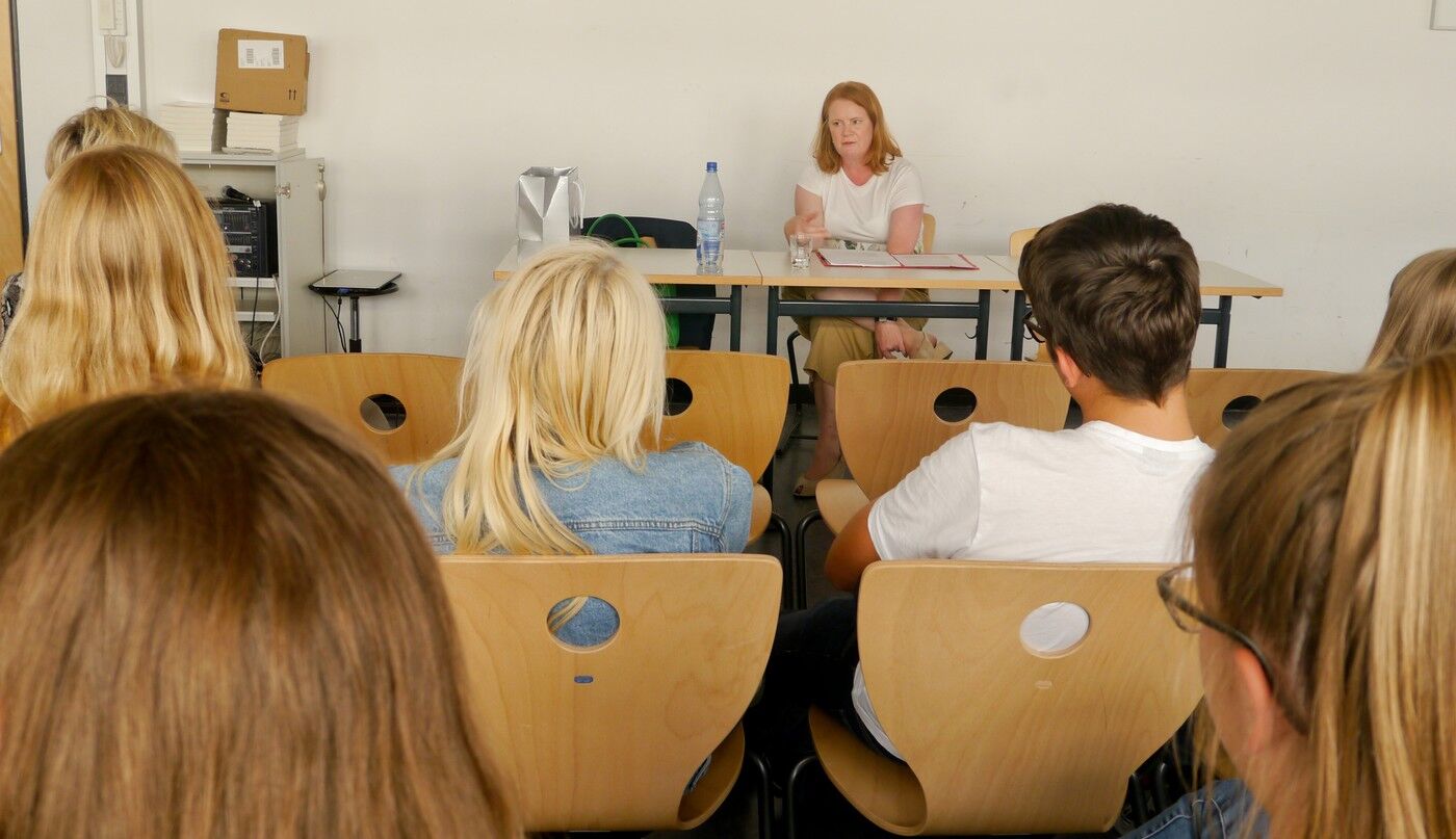 Die Idee dieses von Frau Kerschl - Referatsleiterin Wirtschaftspolitik, Fachkräfte, Frauen in der Wirtschaft bei der IHK München und Oberbayern - organisierten Projekts besteht darin, junge Menschen v.a. Mädchen und Frauen zu ermutigen, als Fach- und Führungskräfte in die Wirtschaft zu gehen und sie auch speziell in Richtung Selbstständigkeit zu inspirieren. Hierzu war Frau Gebekken, die Geschäftsführerin Commercial & Security der Flughafen München GmbH eingeladen. Sie erzählte zuerst von ihrer beeindruckenden beruflichen Laufbahn, wie sie zu ihrem Posten am Flughafen München kam, ihrer Motivation und ihrem beruflichen Alltag. Danach hatten die Schülerinnen und Schüler noch die Möglichkeit, Fragen zu stellen. Im zweiten Teil des Unternehmerinnenbesuchs durfte das JUNIOR-Unternehmen Glasecco, Frau Gebekken die eigene Geschäftsidee vorstellen und gemeinsam wurden Optimierungsvorschlägen erarbeitet und diskutiert. Ein herzliches Dankeschön nochmal an Frau Gebekken und Frau Kerschl, die uns diesen interessanten Nachmittag ermöglicht haben. Danielle Gromball Q11, Katrin Westermeier