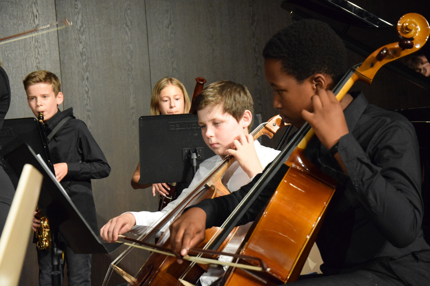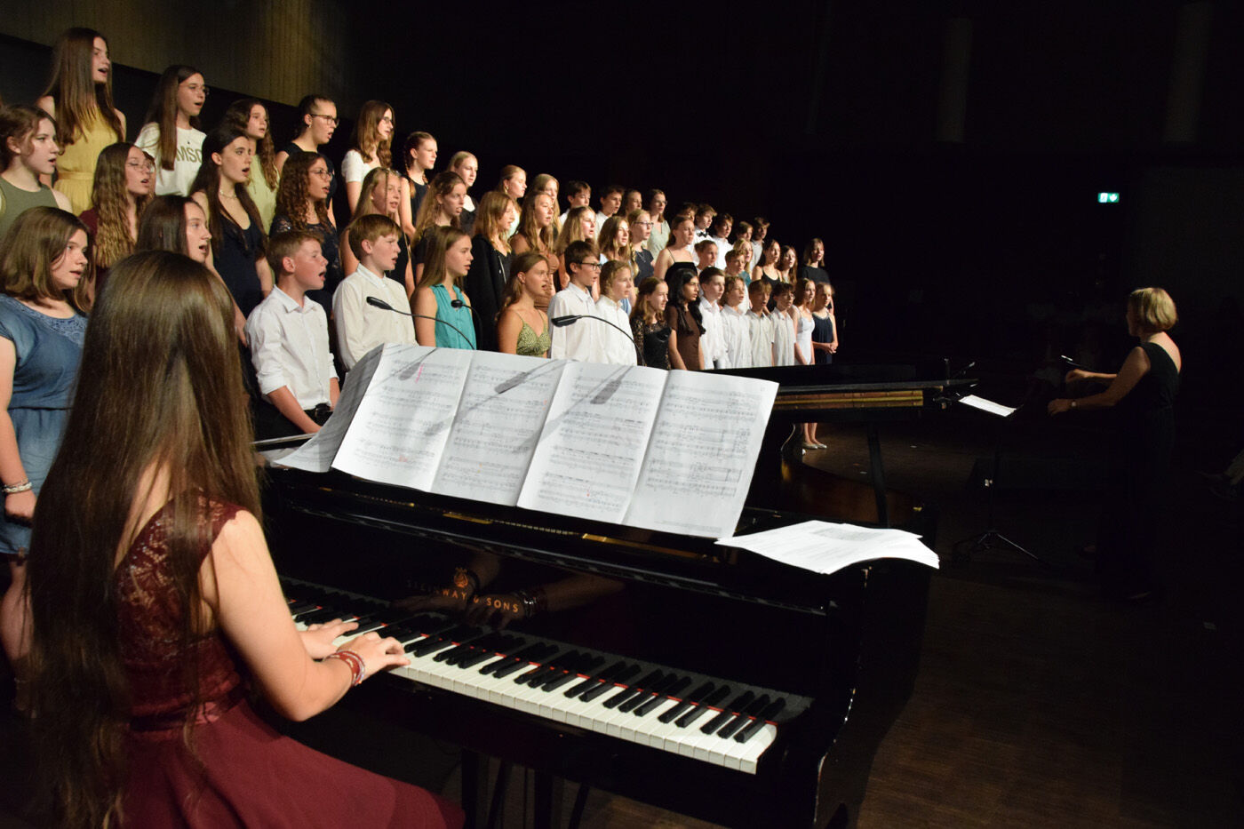 Neben der Uraufführung von Keesers Komposition wartete auf die Zuhörer ein vielfältiges musikalisches Programm. Das Jugendblechbläserensemble unter der Leitung von Gunther Fendler sorgte für den schwungvollen Auftakt. Große Nervosität machte sich dann bei den Jüngsten breit. Für die Mitwirkenden des Jugendchors der 5. Klassen (Leitung Ursula Bongard) und für den Jugendchor der 6. Klassen (Leitung Verena Egger und Ramona Schwarzer) war es der erste große Auftritt in der Camerloher-Aula. Die Aufregung war unbegründet. Die beiden Chöre hatten alle Stücke perfekt einstudiert, genauso wie der Jugendchor der 7. und 8. Klassen (Leitung Friederike Eglhuber).