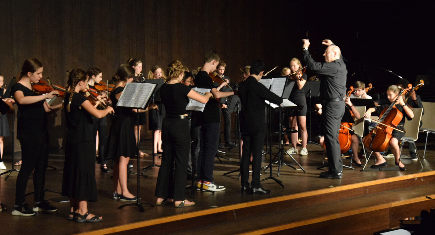 Wer es geschafft hatte, eine der begehrten Eintrittskarten für das Sommerkonzert zu erwerben, kam in den Genuss einer Uraufführung. Martin Keeser, bekannter Freisinger Musiker, Komponist und selber Absolvent des Camerloher-Gymnasiums hatte für das Jugendsinfonieorchester eigens ein Werk komponiert: „Kleines Konzert im alten Stil für drei Violinen, Pauke und Streichorchester“. Diese Uraufführung war ein Highlight des Abends. Die Schülerinnen und Schüler waren mächtig stolz darauf, diese Uraufführung spielen zu dürfen. „Es ist sehr schön, dass Sie sich so viel Zeit fürs Komponieren und fürs Einstudieren genommen haben“, bedankten sich die Ensemblemitglieder bei Keeser. Und der war sehr zufrieden mit der Umsetzung seines Werkes: „Das Orchester hat das sehr gut gemacht.“
