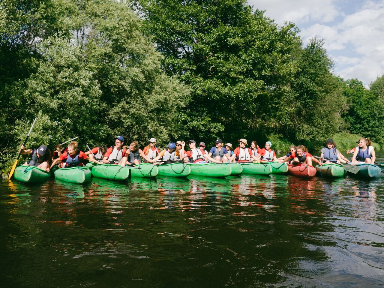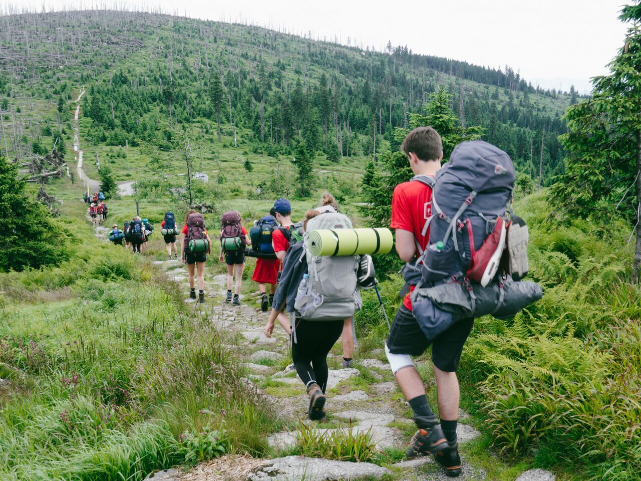 Als die Reise am Montag, den 1.7.2016 mit unseren Seminarleitern und den Begleitern Frau Raschke und Herr Dr. Bscheider startete, war die gesamte Tour bis ins letzte Detail geplant. Bei der Vorbereitung trennten wir uns in viele kleine Arbeitsgruppen, wie zum Beispiel „Sponsoren“; „Tourenplanung“, „Packliste“ oder „Sport“. Der letztgenannte AK bereitete uns in Sportstunden auf die konditionelle Belastung während der Wanderung vor. Schon unser erster Tag verlangte nämlich einiges von uns. Mit 1237 Höhenmeter und einer Strecke von 11,66 km starteten wir in der Nähe des Dreisessels und dem Dreiländereck Deutschland-Österreich-Tschechien, wo wir die Pausen einlegten und den wunderschönen Ausblick genossen. Auch der erste Abend auf dem etwas zu kleinen Notübernachtungsplatz und die Nacht überstanden wir gut, sodass wir am nächsten Tag zu unserer zweiten Etappe starten konnten. Diese war wohl die anstrengendste, da wir mit 22,6 km am zweiten Tag die längste Strecke fußläufig zurück legten. Nachdem wir an unserem letzten Tag, an dem wir zu Fuß unterwegs waren, die Strecke durch eine Zugfahrt etwas verkürzten - diese Möglichkeit hatten wir auch schon am Tag zuvor genutzt, da der nötige Weg vom Dreiländereck zur Moldau-Einstiegsstelle ganz ohne Hilfsmittel nicht zu bewältigen war - und die Mittagspause auf dem Baumgipfelpfad in Lipno verbracht hatten, neigte sich unsere Wanderung dem Ende zu. Weiter ging es am vierten Tag von Vissy Brod aus mit dem Kanu. Insgesamt legten wir in den kommenden drei Tagen etwa 70 km auf dem Wasser zurück und lernten dabei auf einer Wasserrutsche ein Wehr zu durchfahren, am Ufer zu landen und auch das ein oder andere Boot nach einem kurzen Tauchgang auszuleeren. Die Nächte verbrachten wir jeweils auf einem Campingplatz, die mal etwas größer, mal etwas kleiner ausfielen, jedoch aber immer mit einer Feuerstelle ausgestattet waren, sodass die Abende bei einer gemütlichen Runde um das Lagerfeuer ausklangen. Auch das Kochen klappte erstaunlicherweise sehr gut, sodass wir jeden Morgen nach einem frischen Porridge aus der Tüte einsatzbereit und in voller Vorfreude auf den Tag mit unserem Guide Michael starteten. Unsere Rucksäcke wurden uns an Land nebenher transportiert, da wir der Gefahr am Abend in nassen Schlafsäcken schlafen zu müssen aus dem Weg gehen wollten. Den letzten Tag verbrachten wir in Budweis, dem Ziel unserer Reise. Den Vormittag konnten wir alle individuell gestalten, mittags trafen wir uns zum Essen und nachmittags besichtigten wir die Brauerei des berühmten „Budweiser“ Bieres.