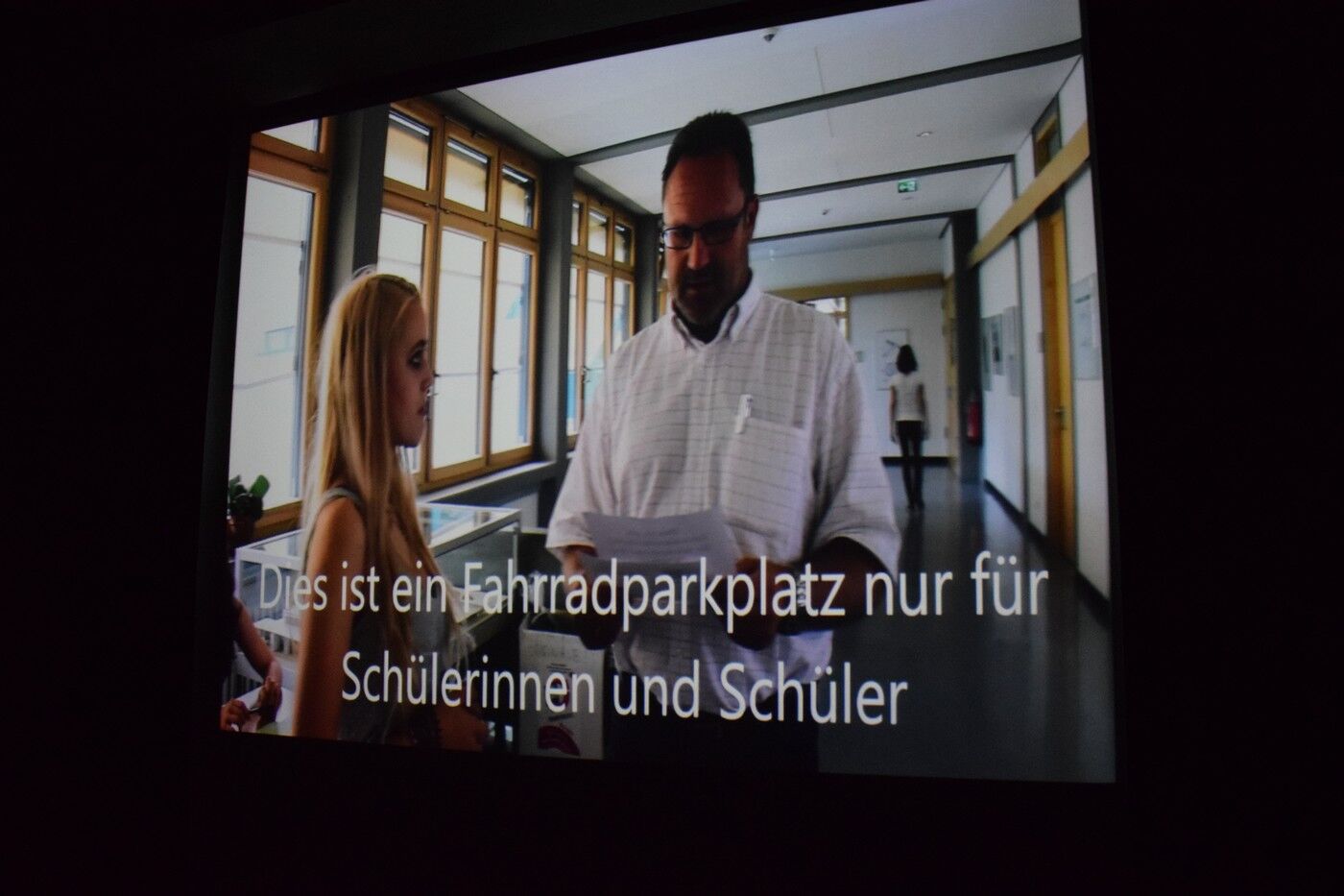 Die intensive Probenarbeit hat sich gelohnt. Ein Highlight folgte auf das andere. Natürlich gab es einige Sketsche aus dem Schulalltag des Camerloher-Gymnasiums, die nur mit einem gewissen Insiderwissen verständlich waren. Das Dauerthema des ungeliebten Fahrradkellers beispielsweise verstand in letzter Konsequenz nur der Camerloher-Insider. Das machte gar nichts. Weil die Schülerinnen und Schüler über großes schauspielerisch Talent verfügen, hatten alle ihre Freude daran. Beeindruckend sicherlich, wie sich junge Menschen mit Vergangenheit, Gegenwart und Zukunft auseinandersetzen am Beispiel der zunehmenden Anglizismen in unserer Sprache. Im Jahre 2048 – so der Blick in die Zukunft – wird Deutsch an den Schulen nur noch als fortgeführte Fremdsprache angeboten. Deutsch ist dann quasi eine tote Sprache wie Latein. Gedanken machten sich die Schülerinnen und Schüler beispielsweise auch, wie eine Lehrerkonferenz abläuft. Einige Vorschläge lauteten: Wie in einer Sitcom? Wie in einem Krimi? Oder wie bei der Mafia mit russisch Roulette?