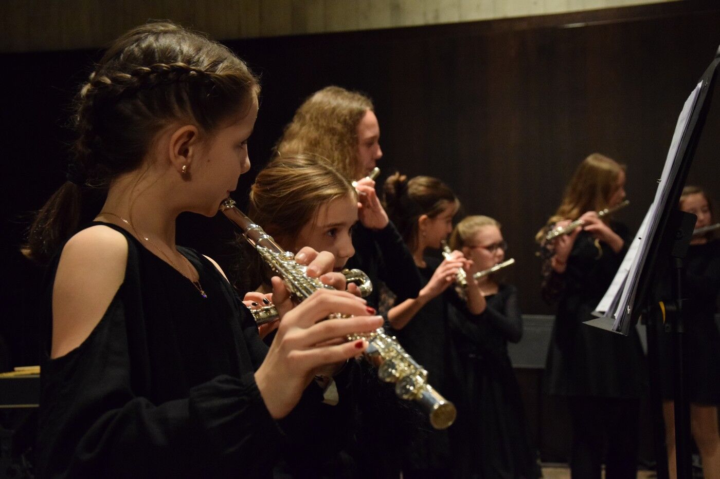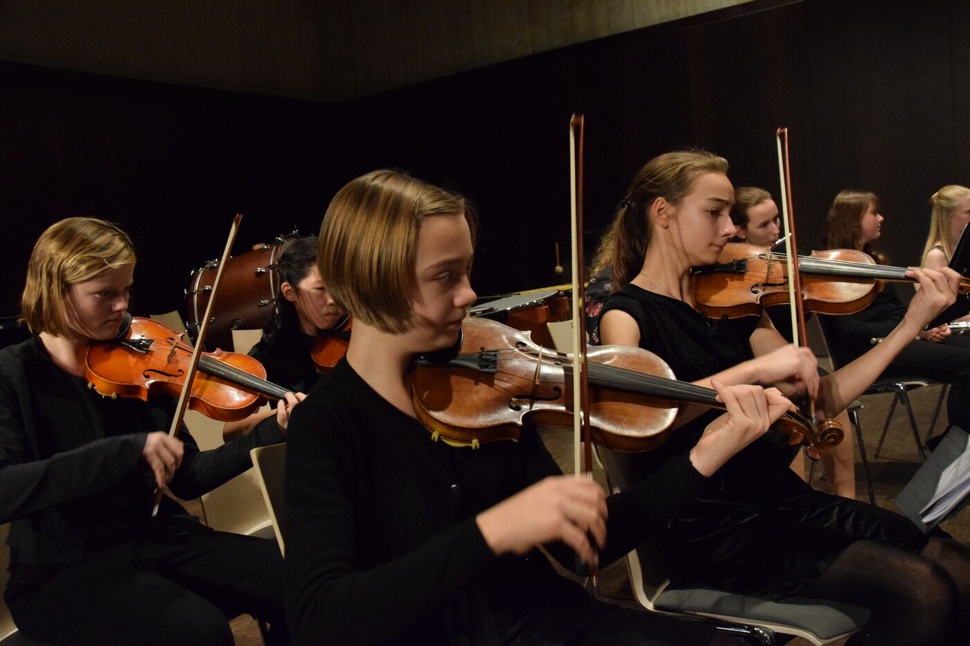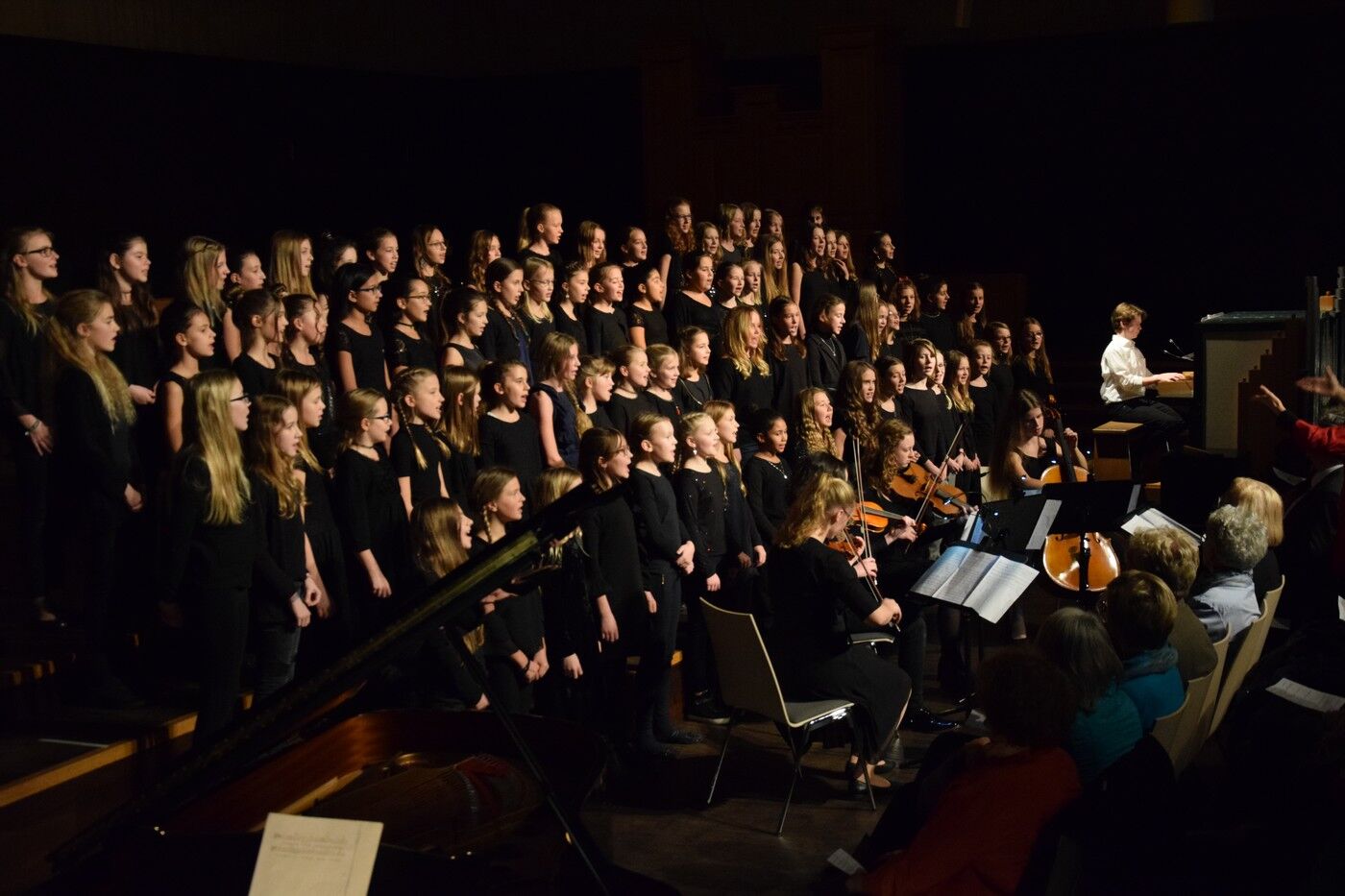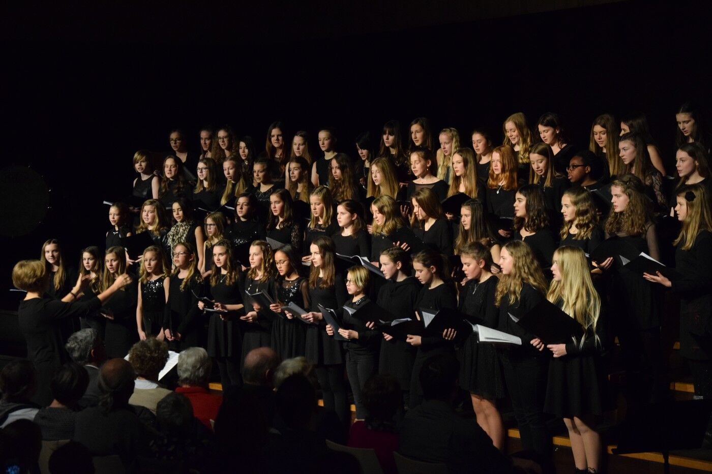 Mit etwas ganz Besonderem startete das Weihnachtskonzert der „Kleinen“. Ein 50-köpfiger Knabenchor (Leitung Birgit Brennich) und ein 14-köpfiges Schlagzeugensembles (Leitung Stefan Pellmaier) sind selbst für ein musisches Gymnasium sehr außergewöhnlich. Die beiden Ensembles stimmten am Mittwochabend die Zuhörer mit „The Little Drummer Boy“ gleich auf Weihnachten ein. Das Jugendblechbläserensemble (Leitung Gunther Fendler), der Mädchenchor der 5.-6. Jahrgangstufe (Leitung Ursula Bongard), das Jugendholzbläserensemble (Leitung Lucinde Haeselbarth), der Mädchenchor der 7.-8. Klassen (Leitung Friederike Eglhuber) und das Jugendstreichorchester (Leitung Marianne Brand) hatten die unterschiedlichsten Stücke – passend zu Weihnachten – einstudiert. Beeindruckend das Ende beim Konzert der „Kleinen“. Alle Ensembles waren gemeinsam auf der Bühne und entließen das Publikum mit „Somebody’s Knocking At Your Door“ und „When The Saints Go Marching In.“