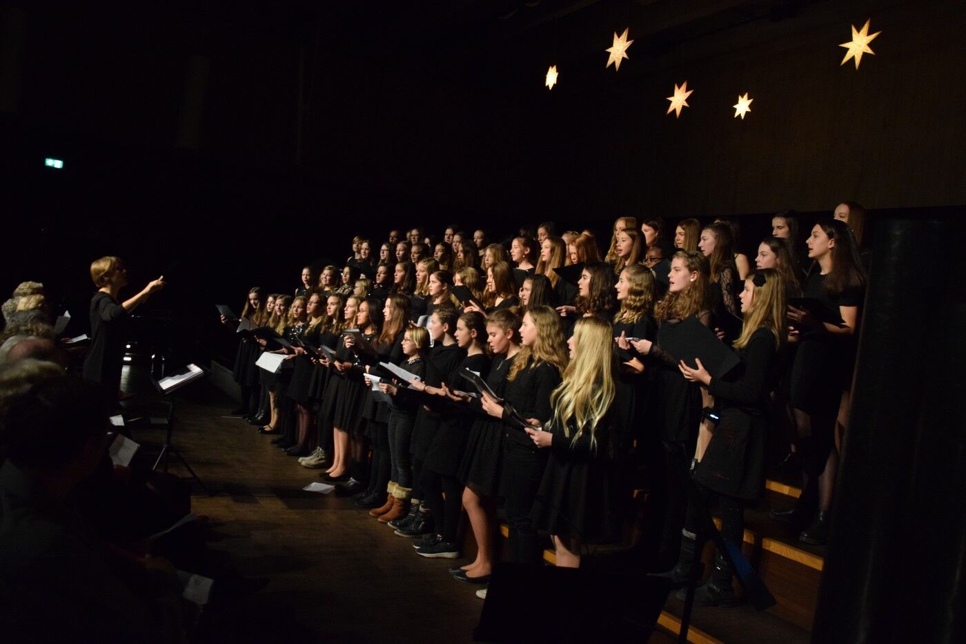 Wenn aus den verschiedenen Musiksälen und Klassenzimmern des Camerloher-Gymnasiums Lieder wie „Mache dich auf und werde Licht“ oder „Jingle Bell Rock“ erklingen, dann weiß jeder: Weihnachten und die damit verbundenen Weihnachtskonzerte stehen vor der Tür. Ein Großteil der Schülerinnen und Schüler ist unmittelbar vor den Konzerten am Proben. Für Schulleiterin Andrea Bliese stellen diese beiden Konzerte eine „Reise Richtung Weihnachten“ dar. Sie bedankte sich bei allen Beteiligten für das große Engagement, das es ermöglicht zwei abwechslungsreiche und anspruchsvolle Konzerte der Schulfamilie präsentieren zu können. Weit über 300 Schülerinnen und Schüler hatten das Konzert der Jahrgangsstufen 5 bis 8 vorbereitet; beim Konzert der „Großen“ (9. bis 12. Jahrgansstufe) waren es knapp 300 junge Musikerinnen und Musiker in unterschiedlichsten Ensembles.