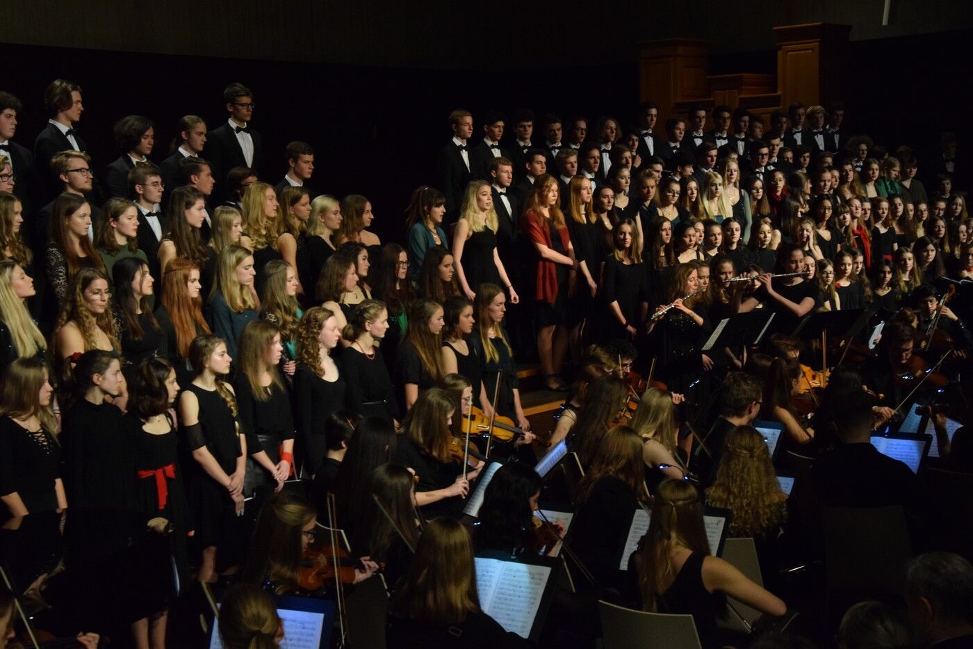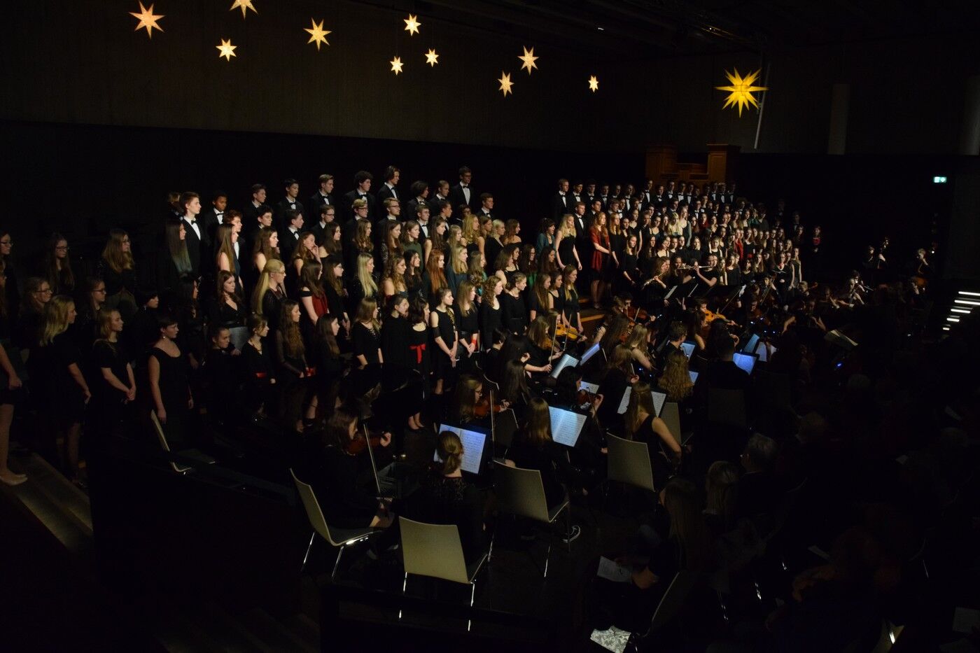 Die Camerloher-Musiker hatten für das Konzert der „Großen“ am Donnerstagabend ebenfalls ein abwechslungsreiches und vor allem auch anspruchsvolles Programm zusammengestellt. Mit dabei waren das Holzbläserensemble (Leitung Till Neumann), der gemischte Chor der 9. und 10. Klassen (Leitung Verena Egger), das Blechbläserensemble (Leitung Gunther Fendler), der Chor der Oberstufe (Leitung Gunther Brennich) und das Sinfonieorchester (Leitung Sebastian Brand). Zahlreiche Solistinnen und Solisten konnten in den verschiedenen Stücken ihr außergewöhnliches Können präsentieren. Mit dem wohl bekanntesten Weihnachtslied „Stille Nacht, heilige Nacht“ setzte der Große Chor den Schlusspunkt. Lang anhaltender Applaus nach den beiden Konzerten. Der Lohn für zwei wunderschöne Konzerte. sp