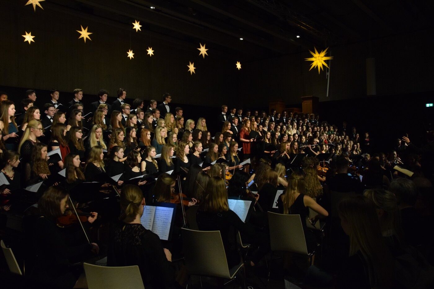 Die beiden großen Weihnachtskonzerte stellen einen der Höhepunkte im Schuljahr des Camerloher-Gymnasiums dar. Der Andrang war sowohl beim Konzert der „Kleinen“ (5.-8-Jahrgangsstufe) am Mittwoch, 19. Dezember, als auch beim Konzert der „Großen“ (9.-12. Jahrgangsstufe) einen Tag später so groß, dass bei weitem nicht alle Kartenwünsche erfüllt werden konnten. Aber mehr Konzerte seien vor Weihnachten einfach nicht machbar, betonten die Musiklehrkräfte.