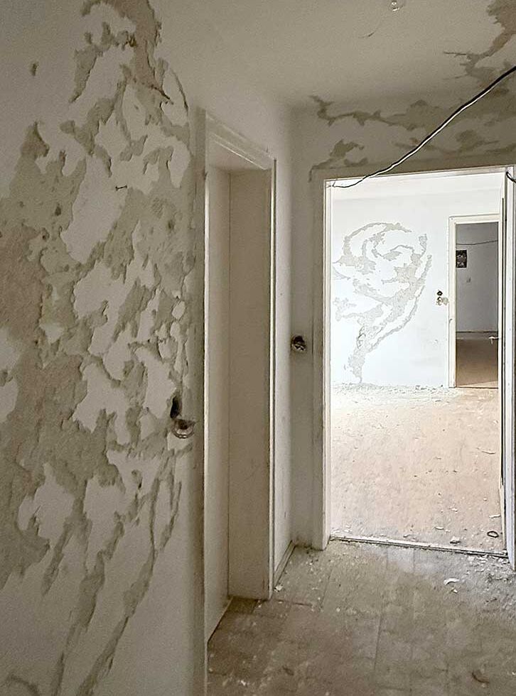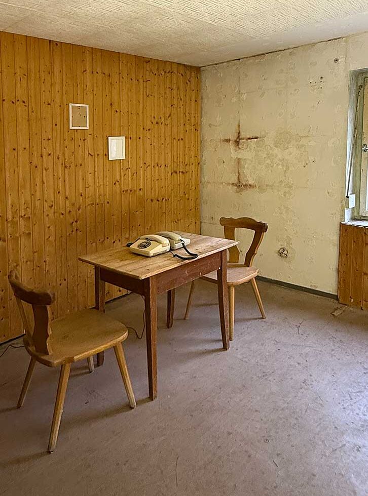 Interessierte konnten die Ausstellung in sieben Wohnungen, Keller und Dachboden entdecken, die Räume über die künstlerischen Arbeiten neu erleben und mit den Künstler/-innen und anderen Besucher/-innen ins Gespräch kommen. Der verlassene Bau bildete dabei weit mehr als nur den Rahmen der Ausstellung. Seine Räume und seine stille Atmosphäre sowie die Spuren ehemaliger Bewohnerinnen und Bewohner wurden von den ausgestellten Werken aufgegriffen und weitergedacht. Maßgeblich trug auch der temporäre Charakter der Ausstellung zu einer ganz besonderen Atmosphäre bei.
